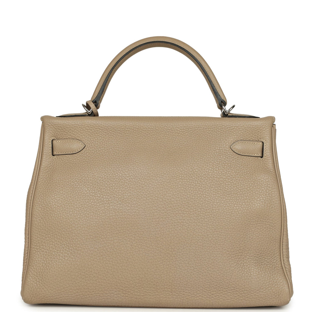 Pre-owned Hermes Kelly Retourne 32 Gris Tourterelle Togo Palladium Hardware