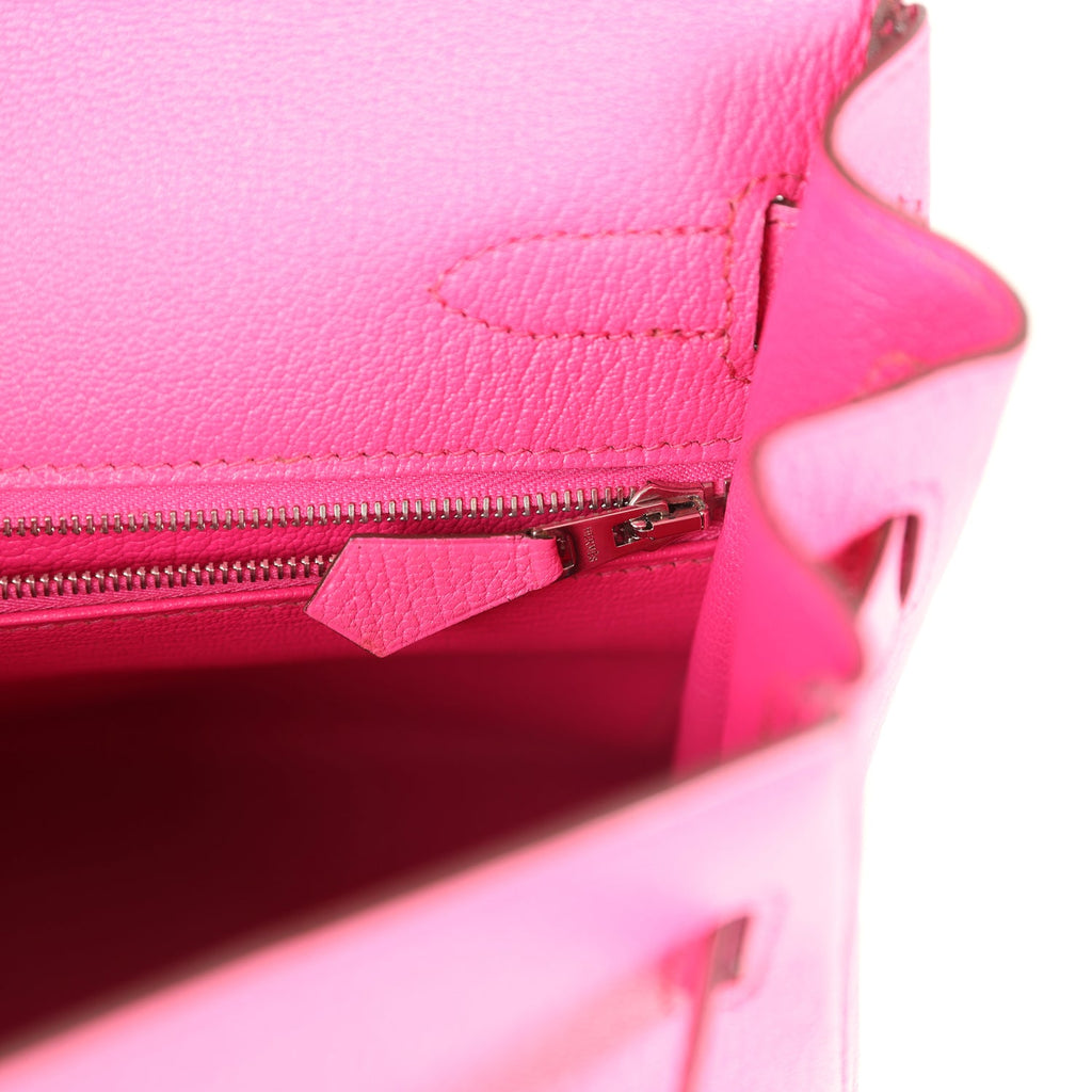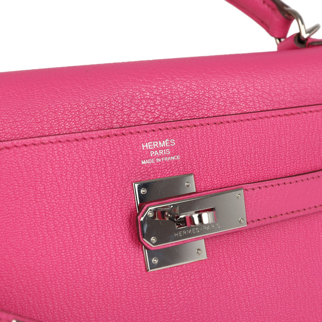 Pre-owned Hermes Kelly Retourne 32 Rose Tyrien Chevre Palladium Hardware