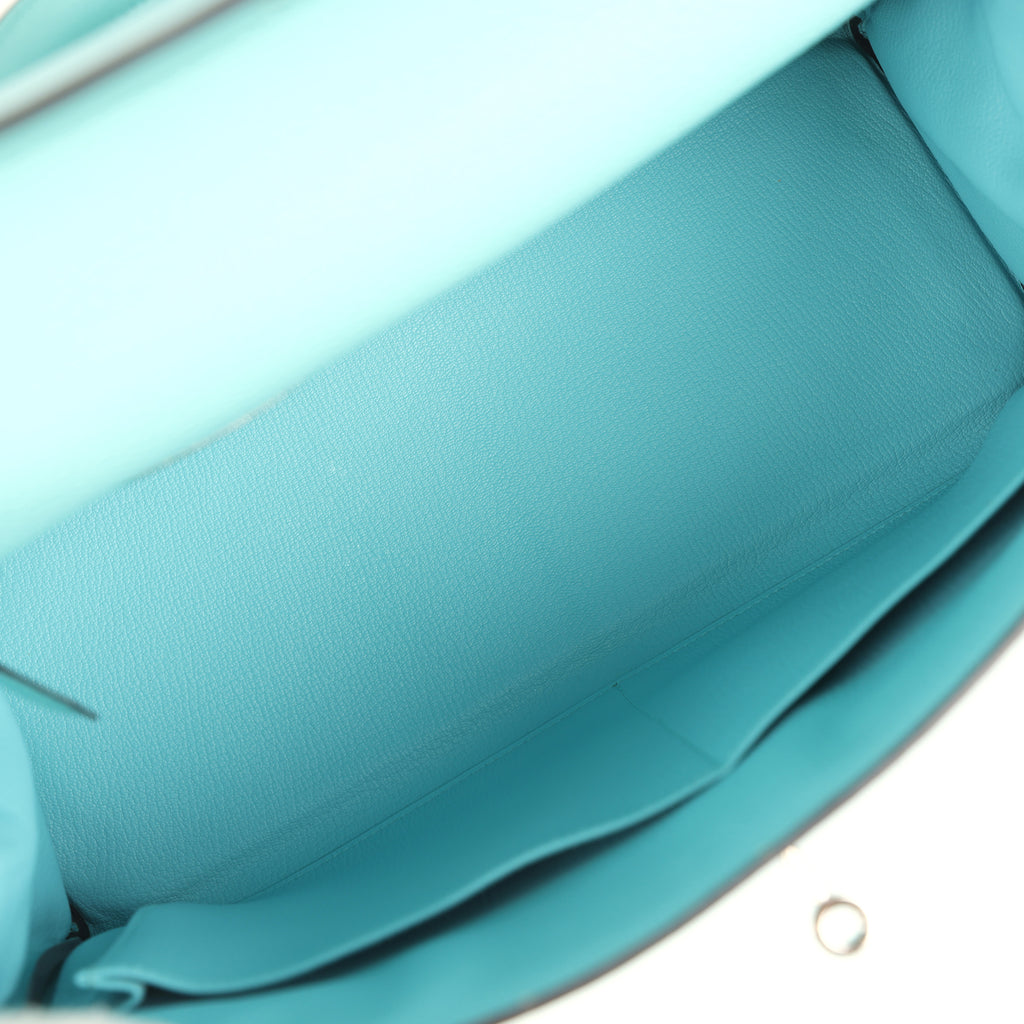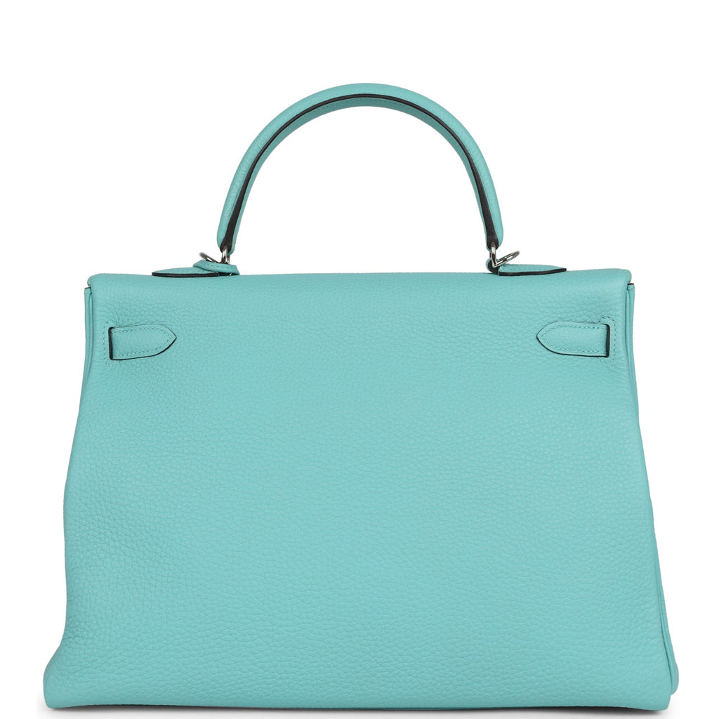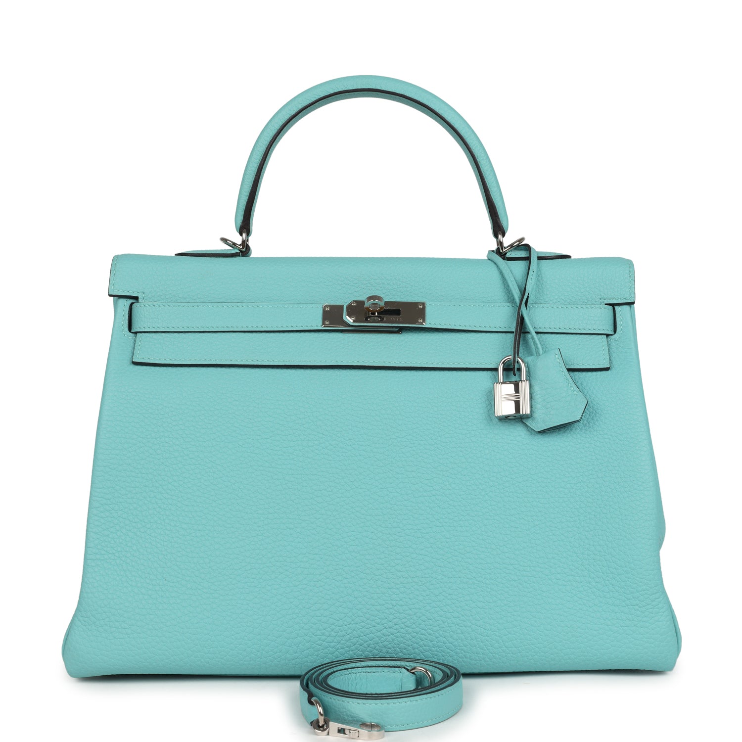 Pre-owned Hermes Kelly Retourne 35 Bleu Atoll Clemence Palladium Hardware