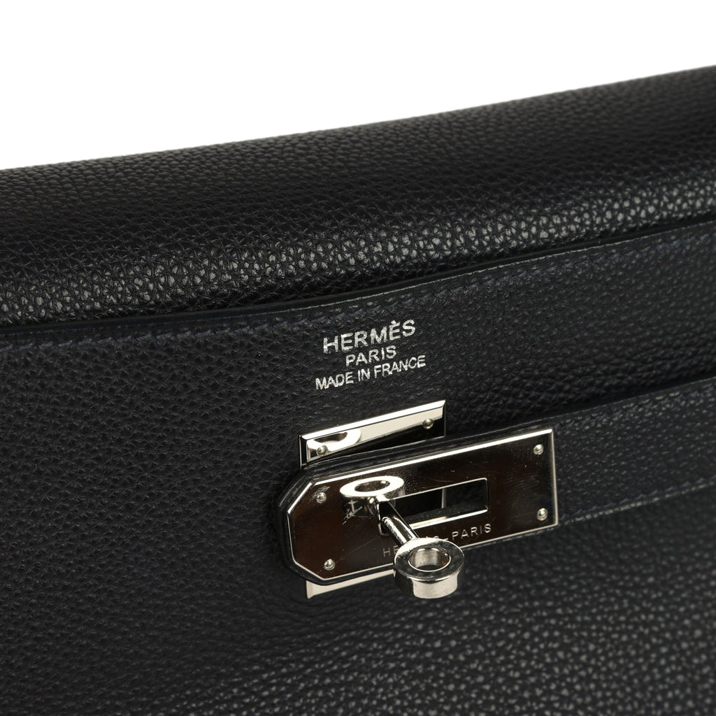 Pre-owned Hermes Kelly Retourne 40 Bleu Indigo Togo Palladium Hardware