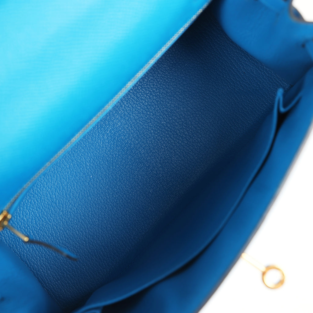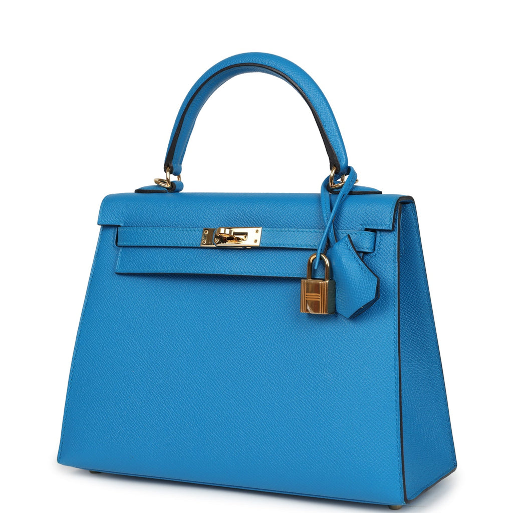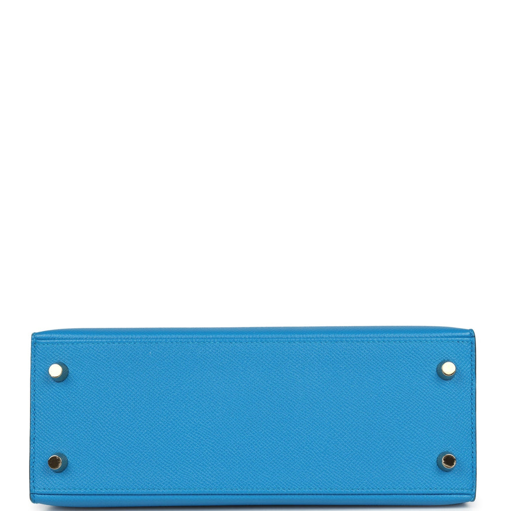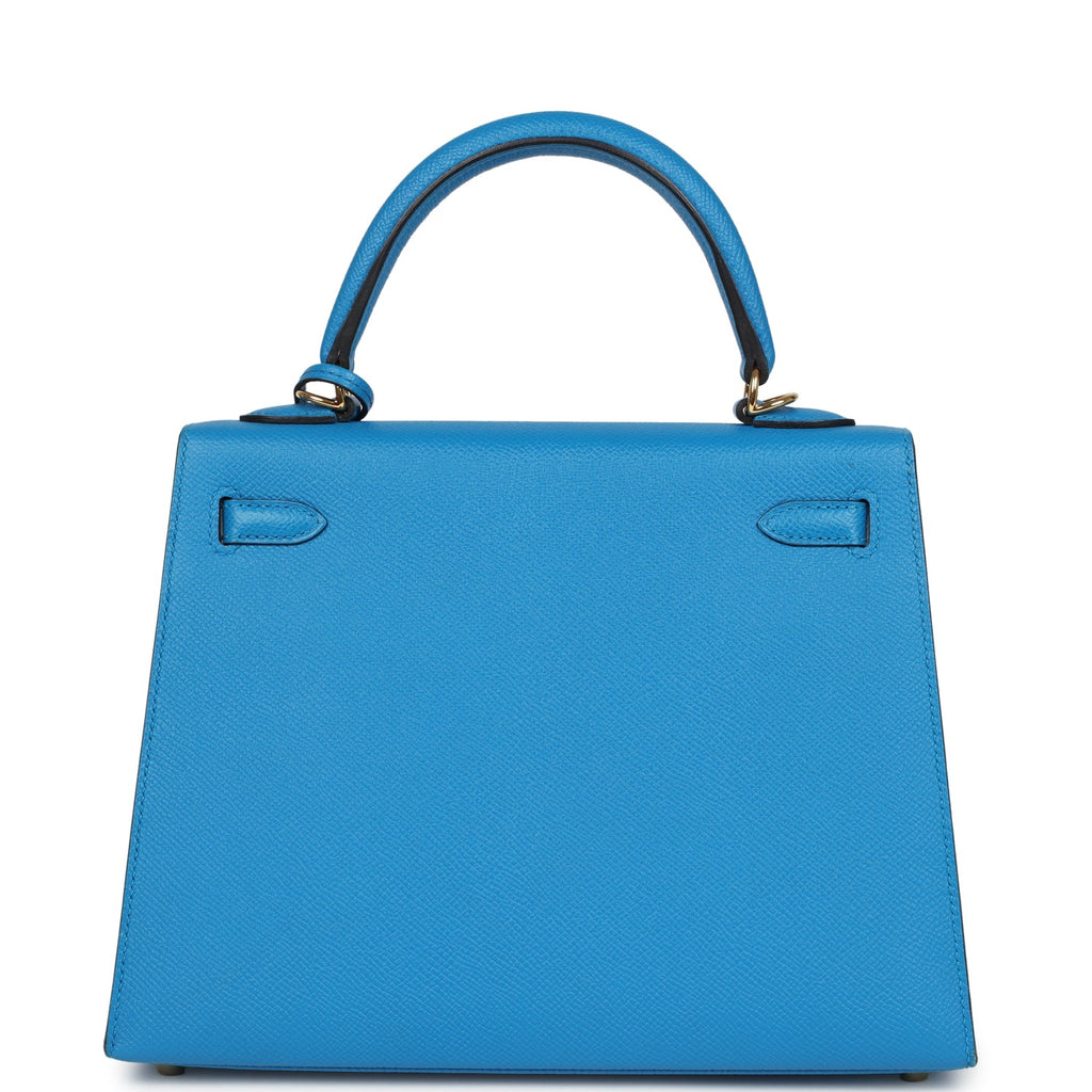 Pre-owned Hermes Kelly Sellier 25 Bleu Zanzibar Epsom Gold Hardware
