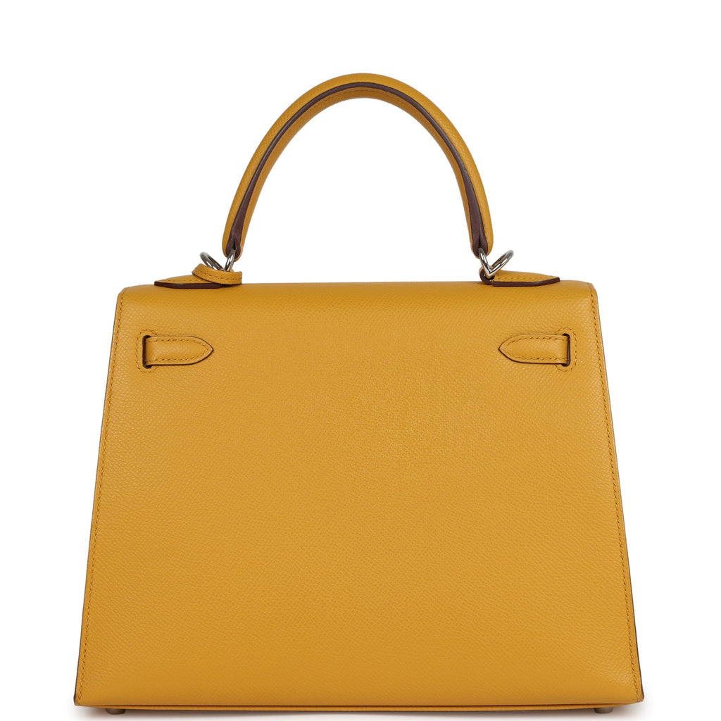Pre-owned Hermes Kelly Sellier 25 Jaune Ambre Epsom Palladium Hardware