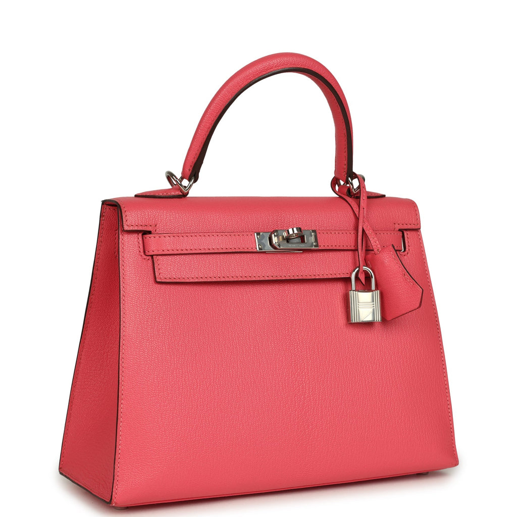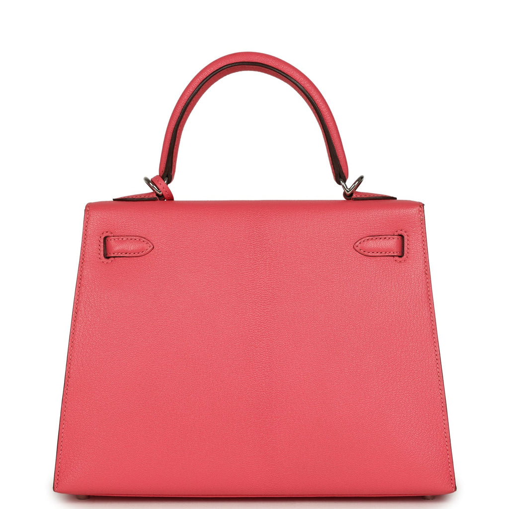 Pre-owned Hermes Kelly Sellier 25 Rose Lipstick Chevre Mysore Palladium Hardware