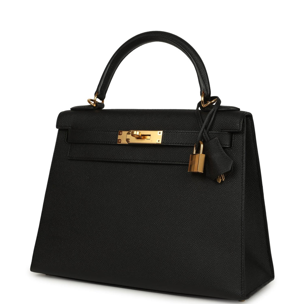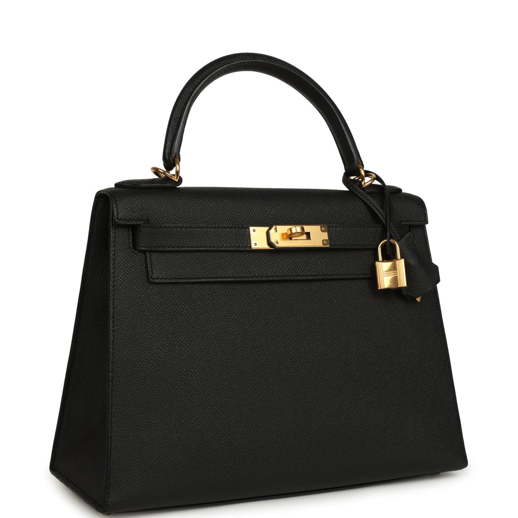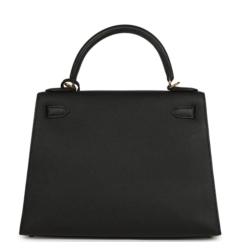 Pre-owned Hermes Kelly Sellier 28 Black Epsom Gold Hardware