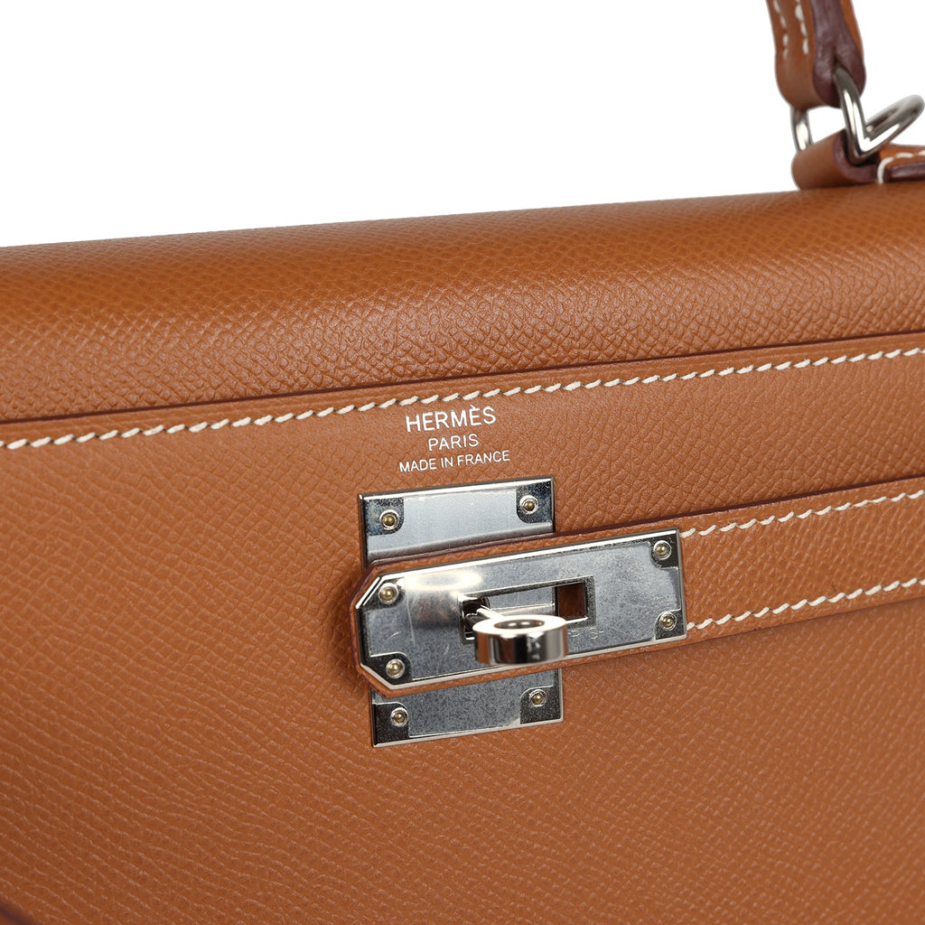 Pre-owned Hermes Kelly Sellier 28 Gold Epsom Palladium Hardware