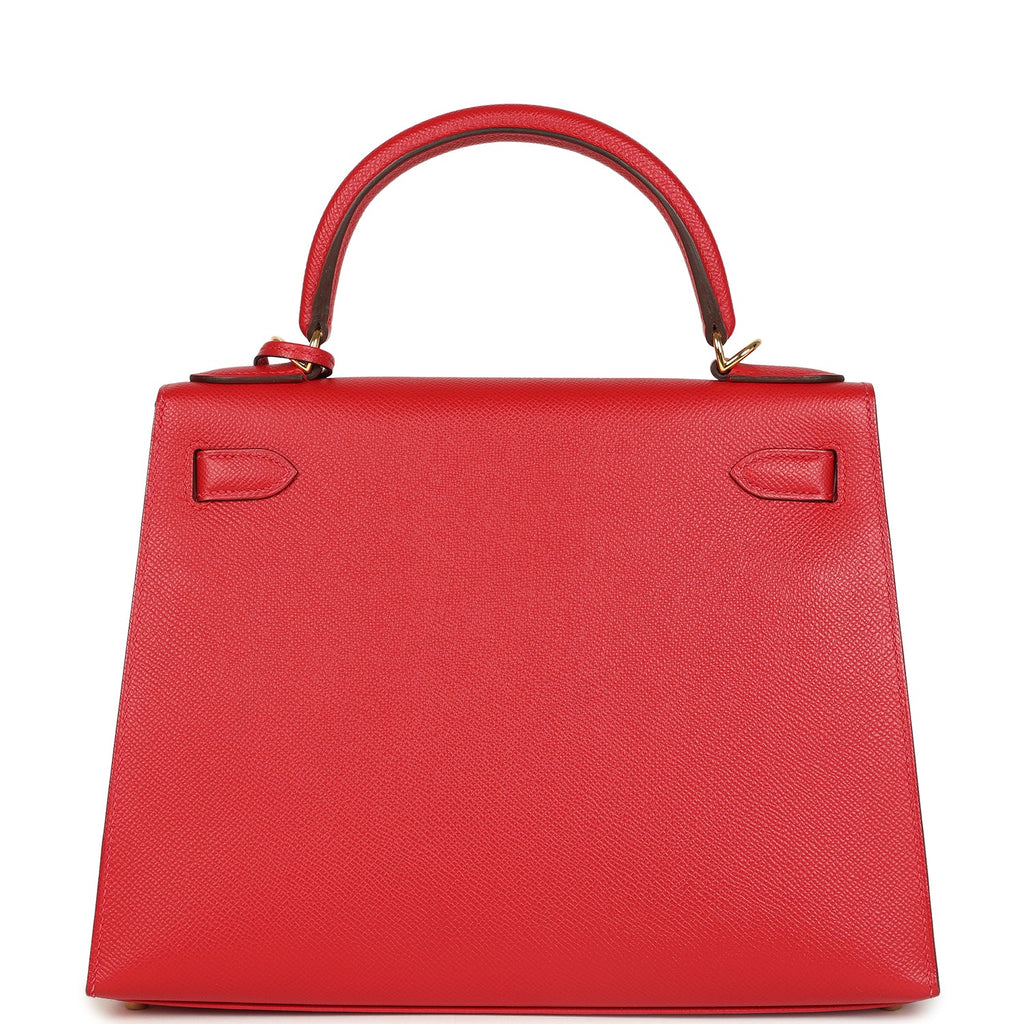 Pre-owned Hermes Kelly Sellier 28 Rouge Casaque Epsom Gold Hardware