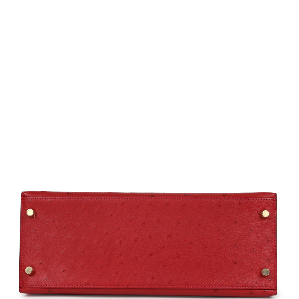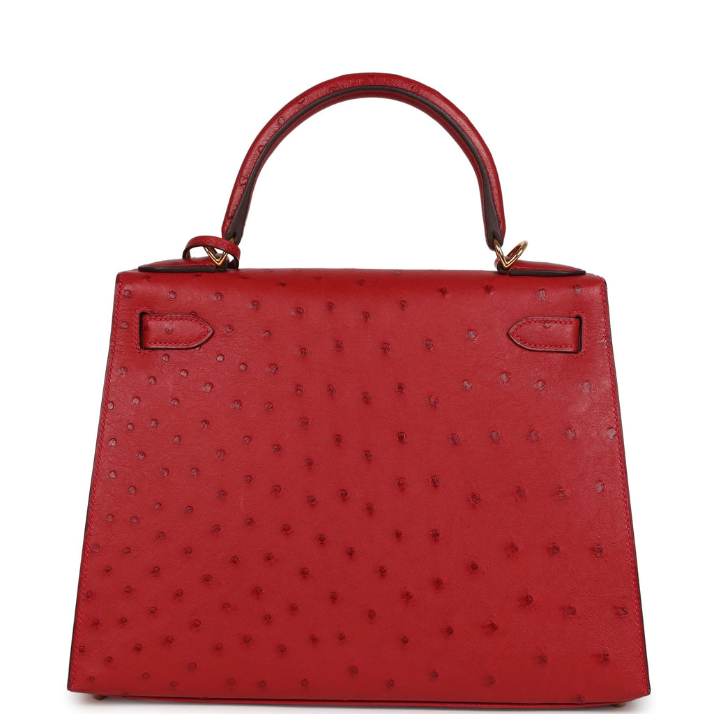 Pre-owned Hermes Kelly Sellier 28 Rouge Vif Ostrich Gold Hardware