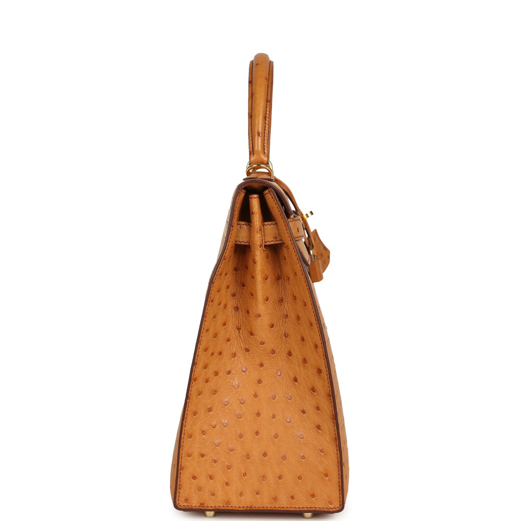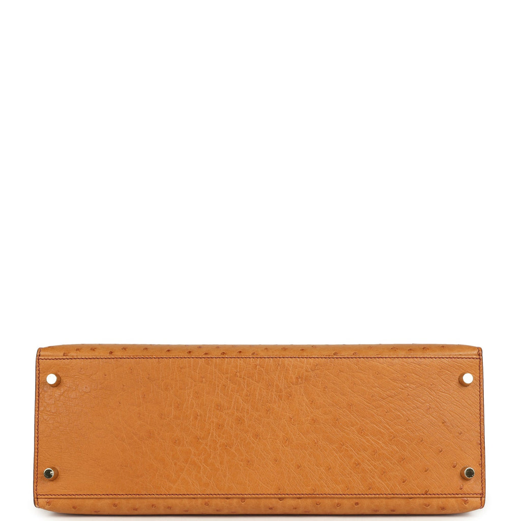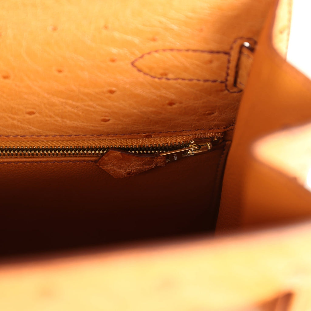 Pre-owned Hermes Kelly Sellier 35 Cognac Ostrich Gold Hardware