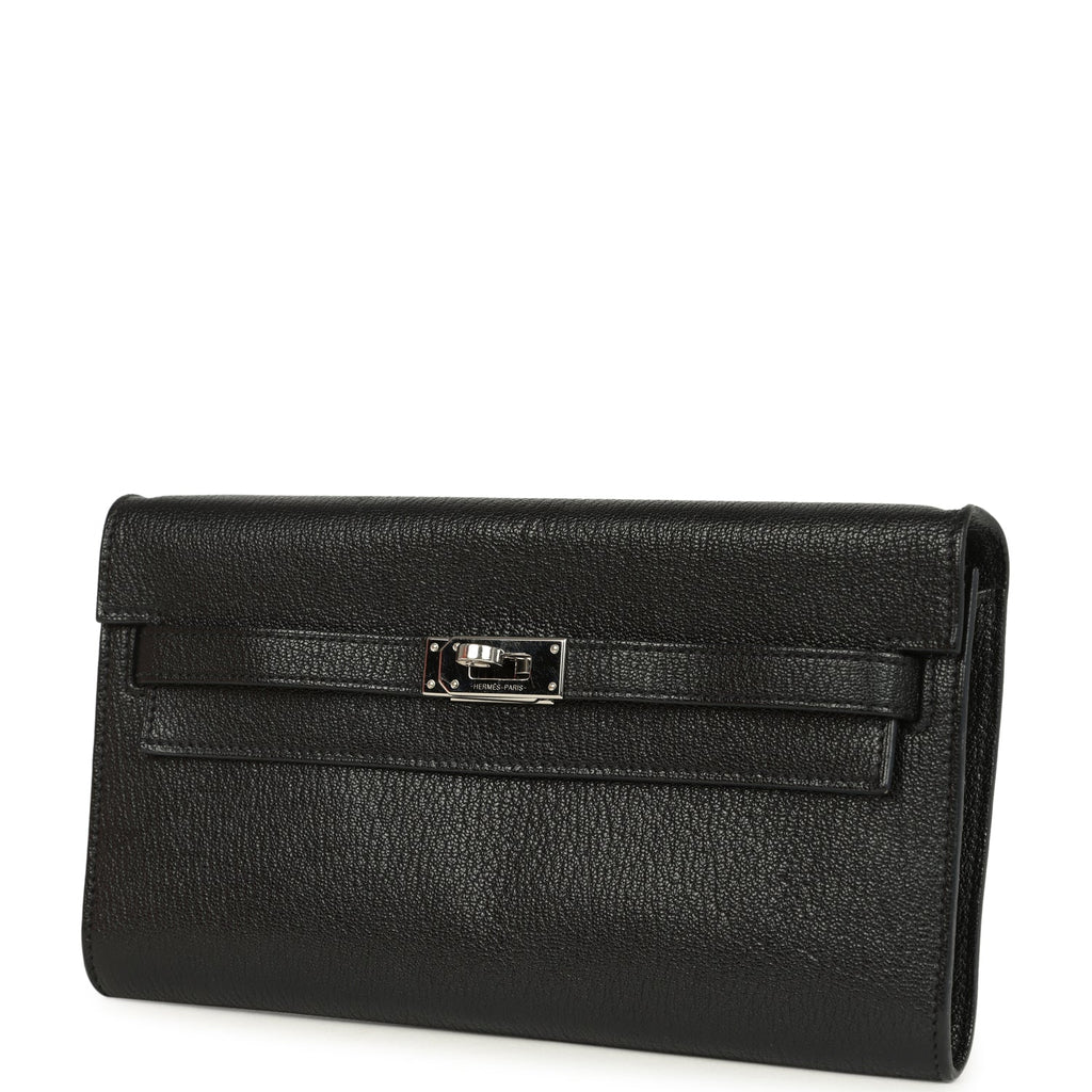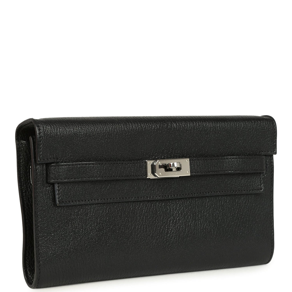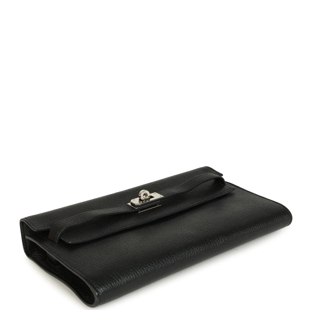 Pre-owned Hermes Kelly Wallet To Go Black Chevre Mysore Palladium Hardware