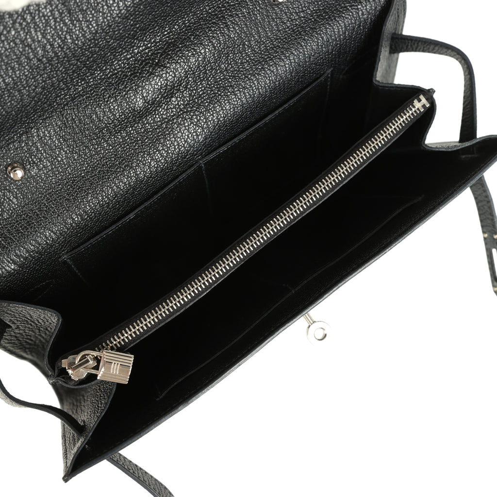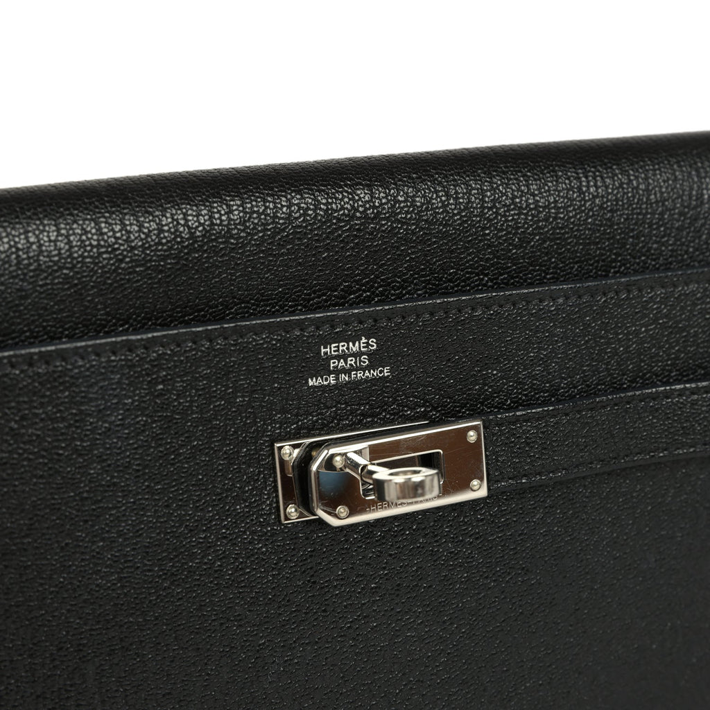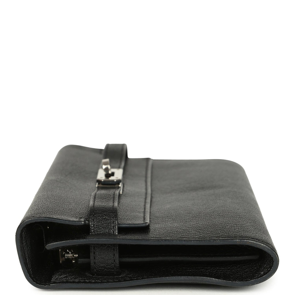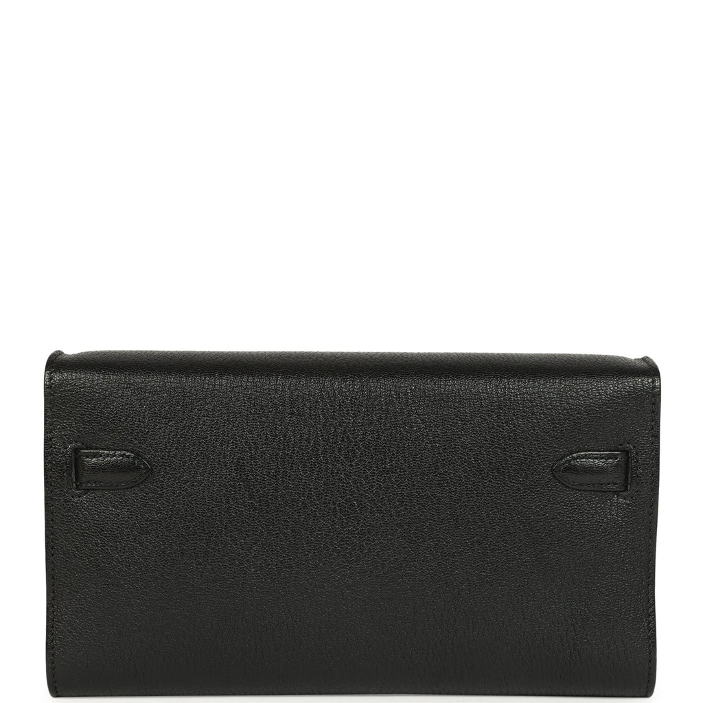 Pre-owned Hermes Kelly Wallet To Go Black Chevre Mysore Palladium Hardware