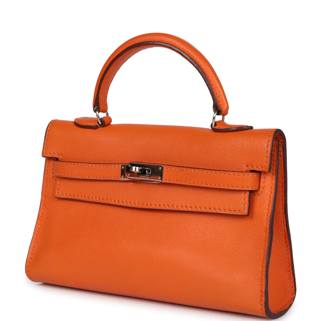 Pre-owned Hermes Micro Kelly 15 Orange Swift Palladium Hardware