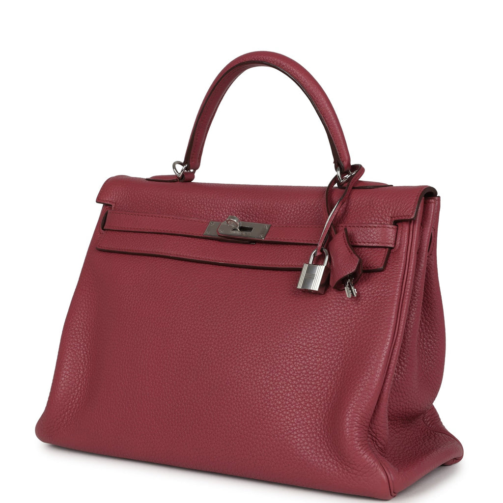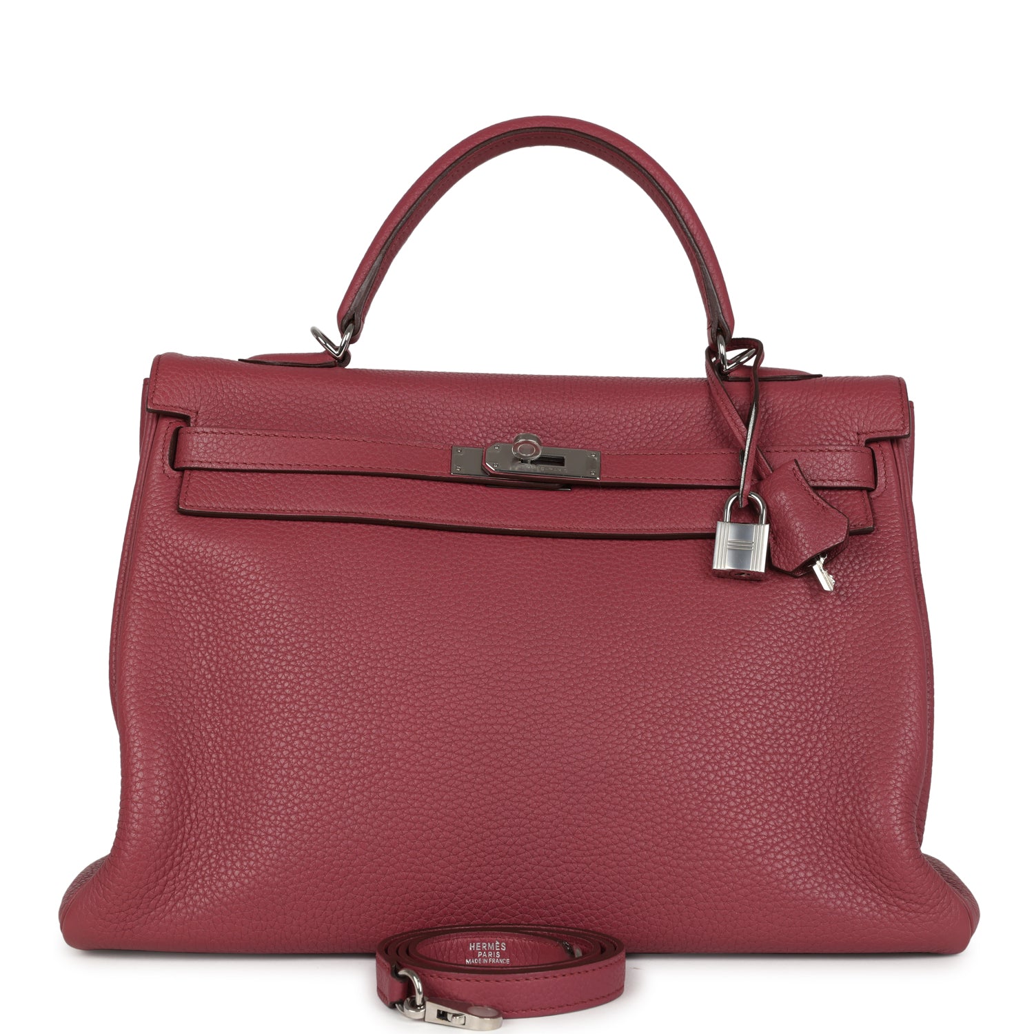 Pre-owned Hermes Retourne Kelly 35 Bois De Rose Clemence Palladium Hardware