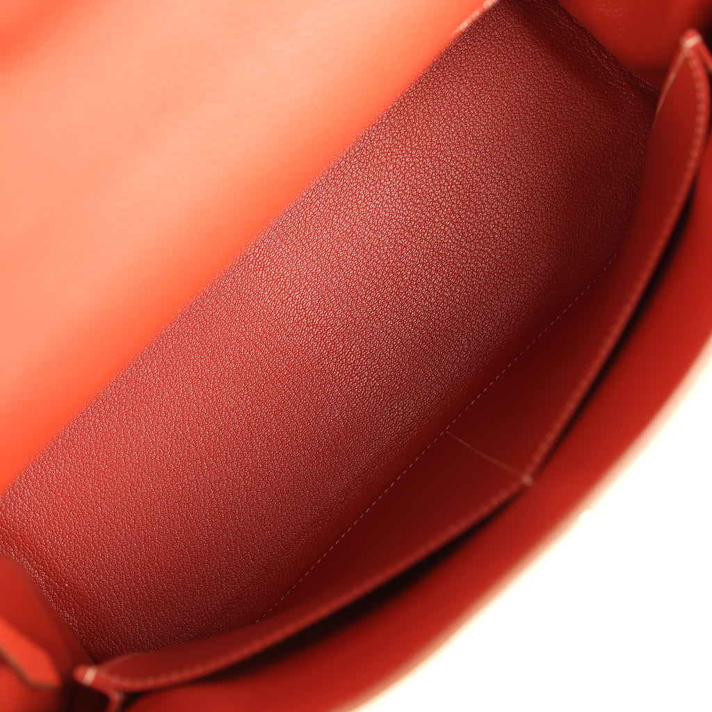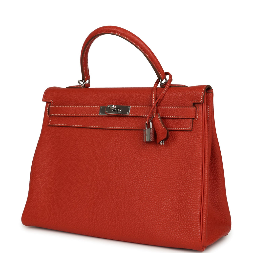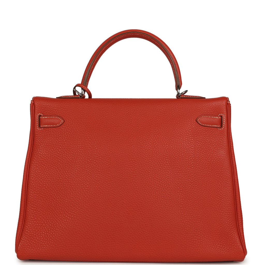 Pre-owned Hermes Retourne Kelly 35 Sanguine Clemence Palladium Hardware