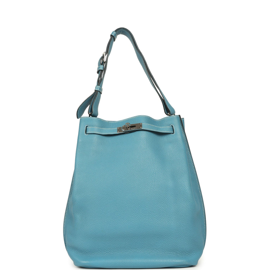 Pre-owned Hermes So Kelly 22 Blue Jean Togo Palladium Hardware