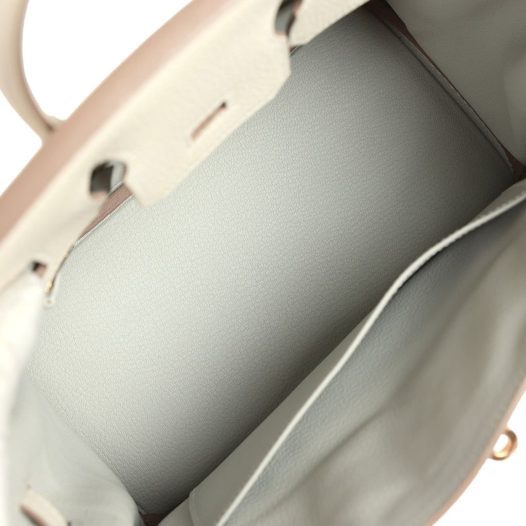 Pre-owned Hermes Special Order (HSS) Birkin 25 Craie Verso Togo Rose Gold Hardware