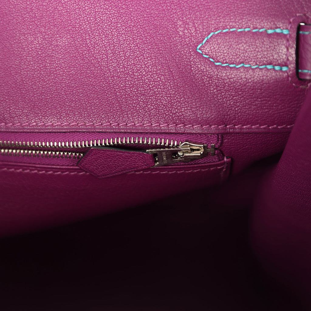 Pre-owned Hermes Special Order (HSS) Birkin 35 Bleu Izmir and Anemone Togo Brushed Palladium Hardware