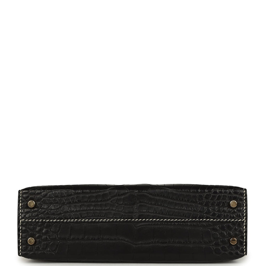 Pre-owned Hermes Special Order (HSS) Kelly Sellier 20 Black and Vanille Matte Alligator Permabrass Hardware