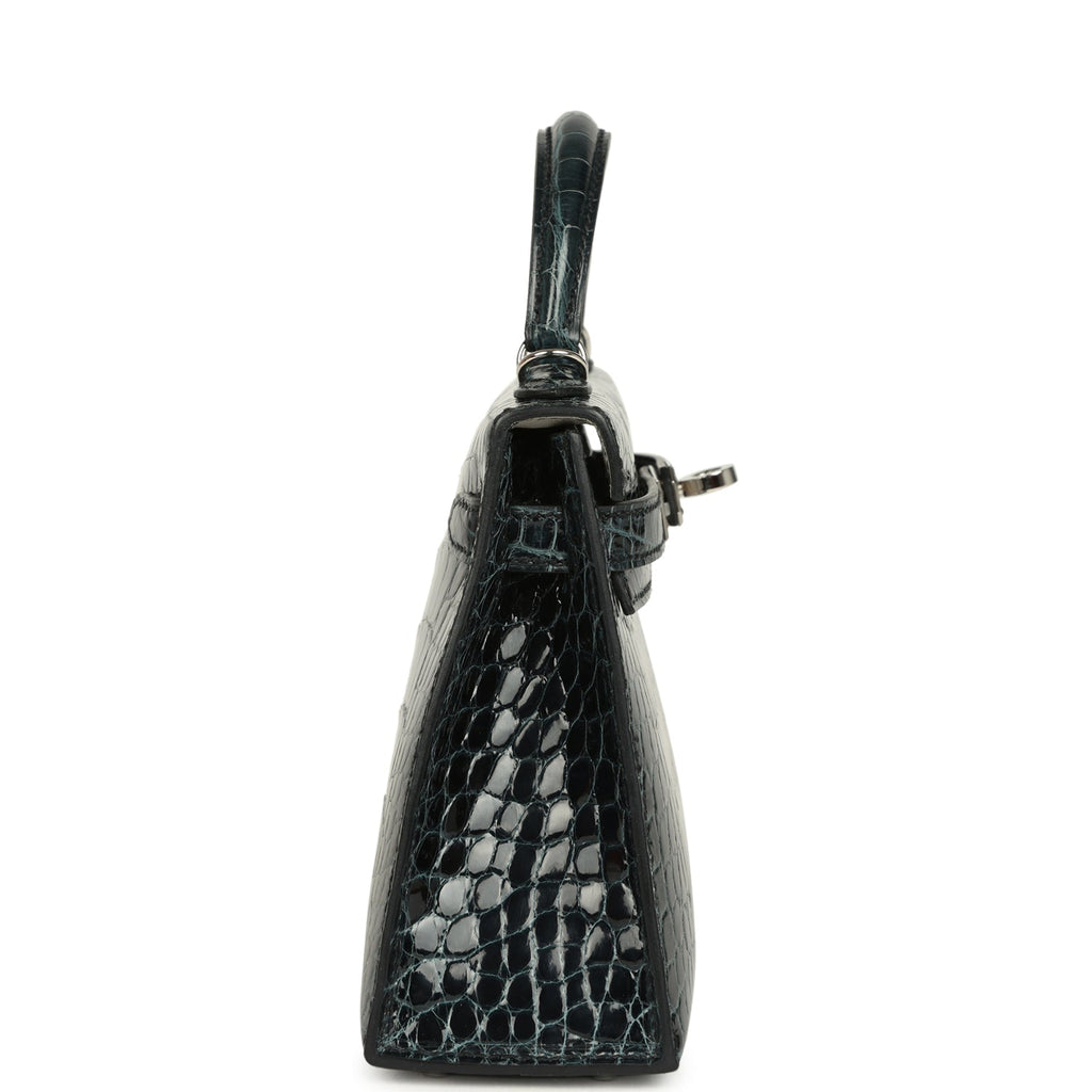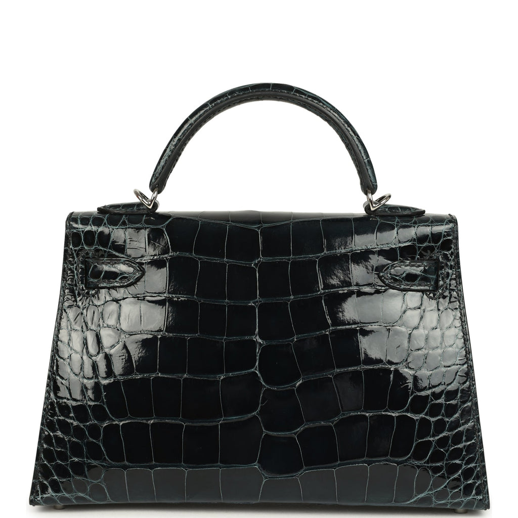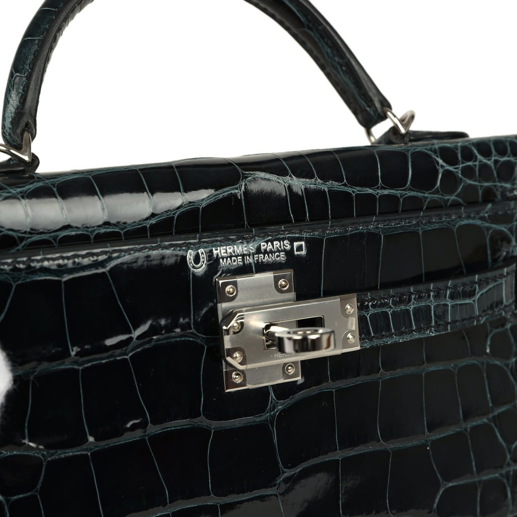Pre-owned Hermes Special Order (HSS) Kelly Sellier 20 Vert Rousseau Verso Shiny Alligator Mississippiensis Palladium Hardware