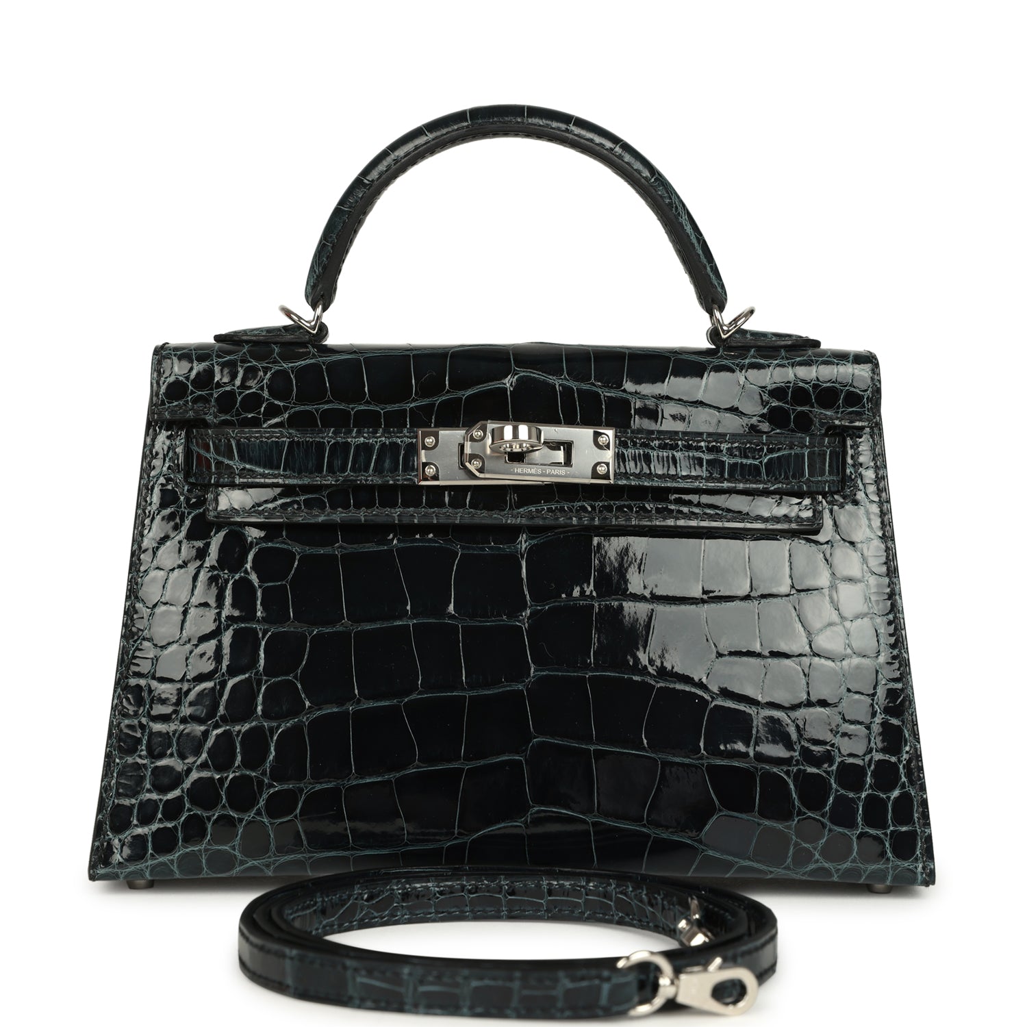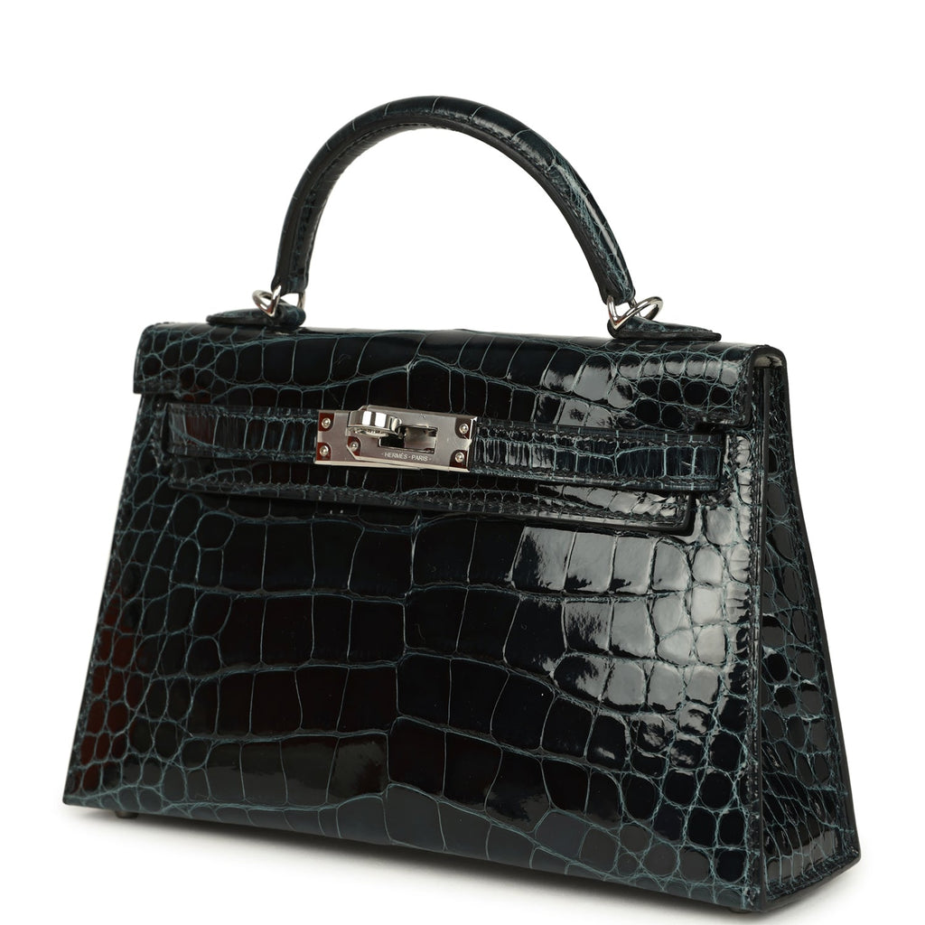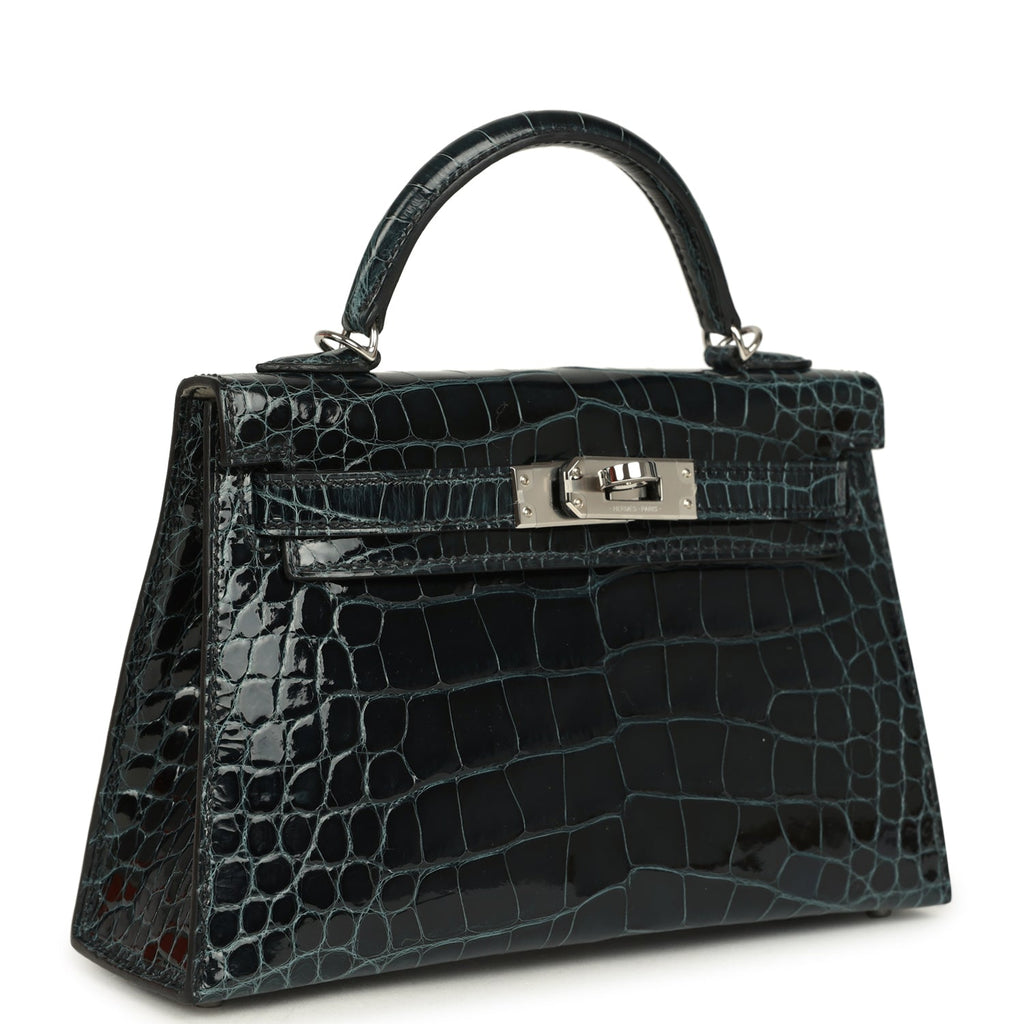 Pre-owned Hermes Special Order (HSS) Kelly Sellier 20 Vert Rousseau Verso Shiny Alligator Mississippiensis Palladium Hardware