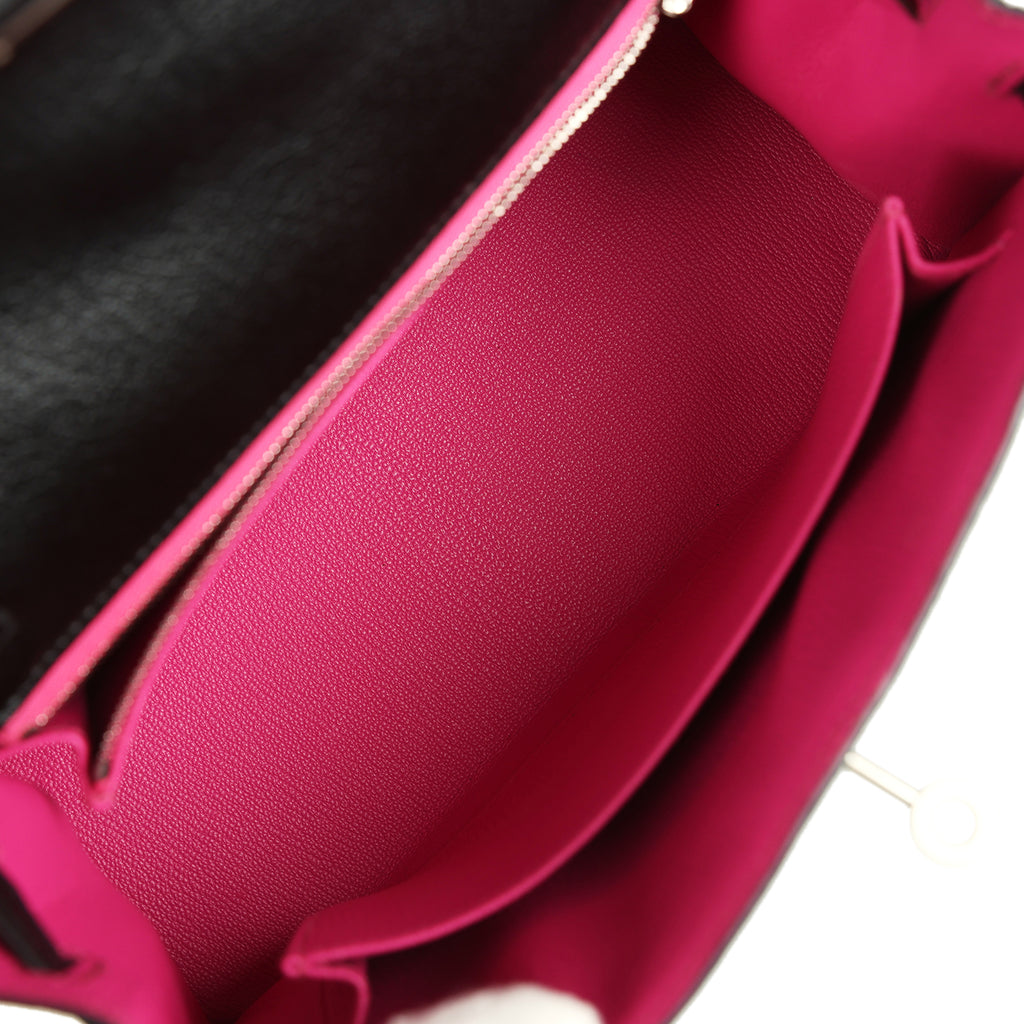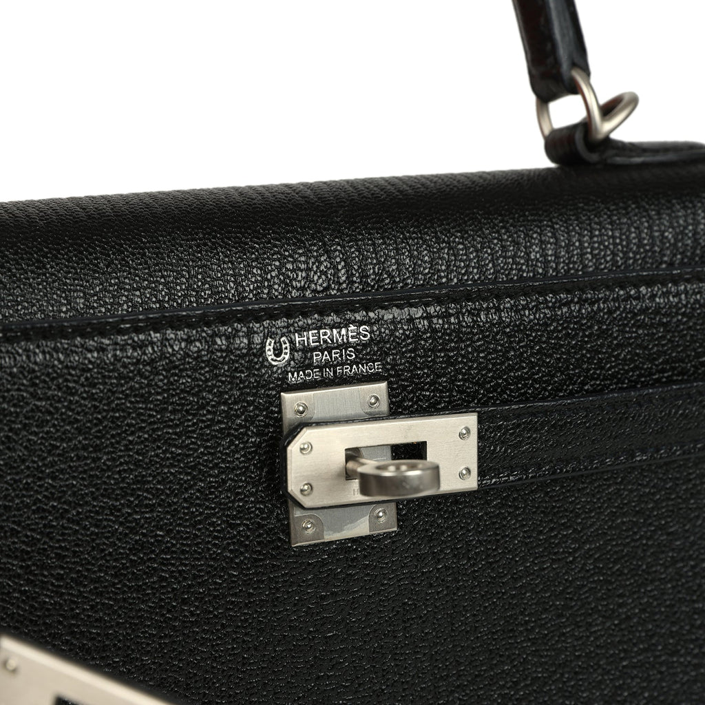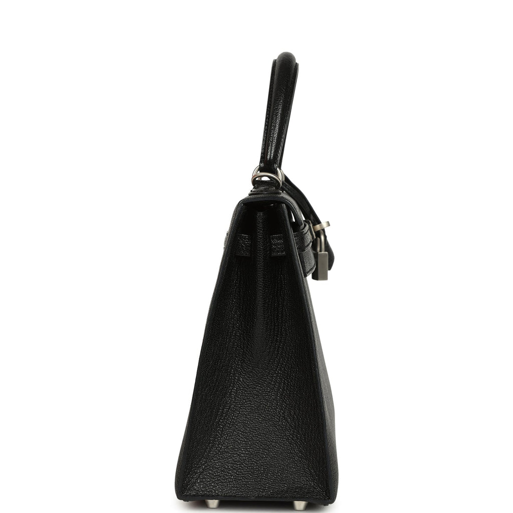 Pre-owned Hermes Special Order (HSS) Kelly Sellier 25 Black Verso Chevre Mysore Brushed Palladium Hardware