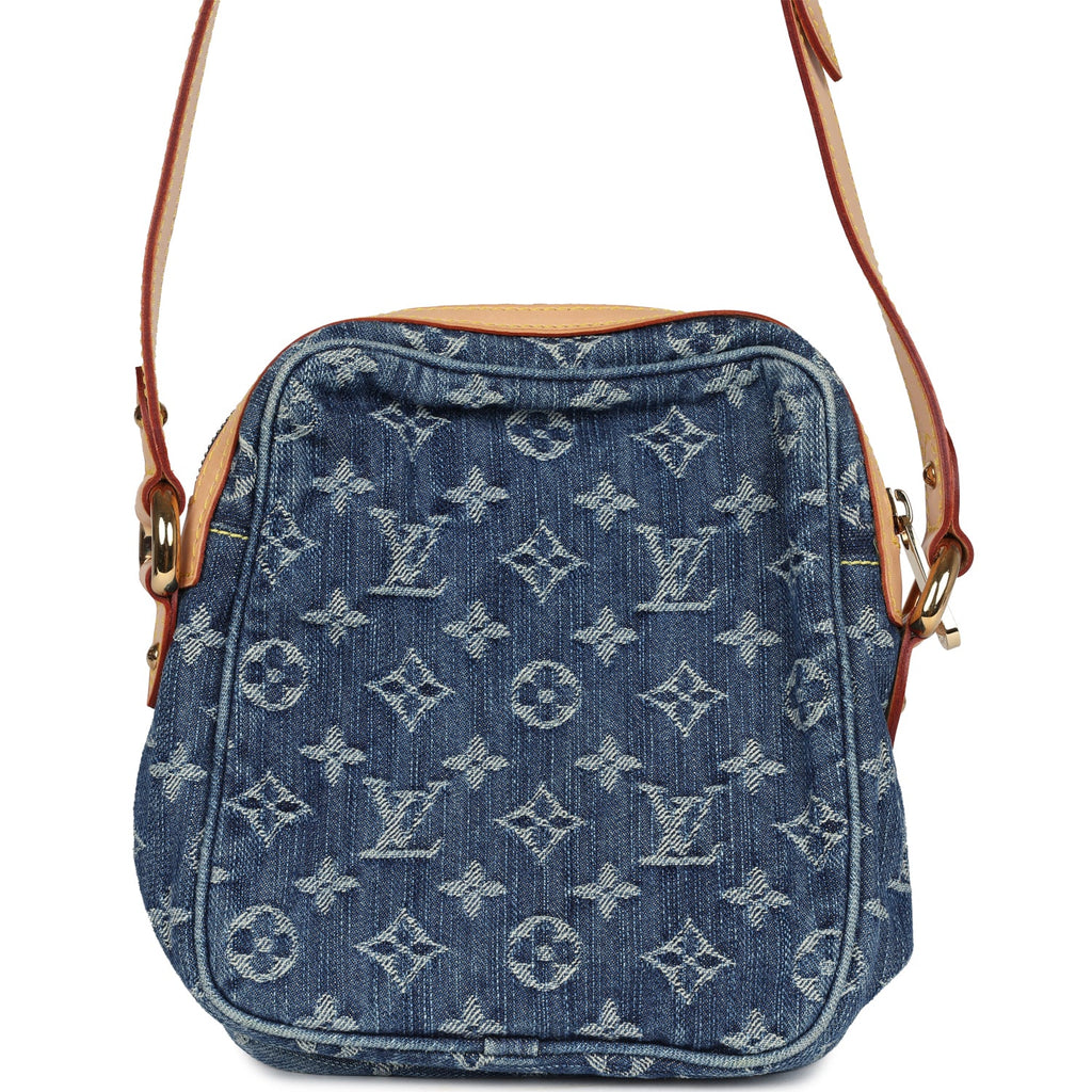 Pre-owned Louis Vuitton Camera Crossbody Bag Blue Monogram Denim Gold Hardware