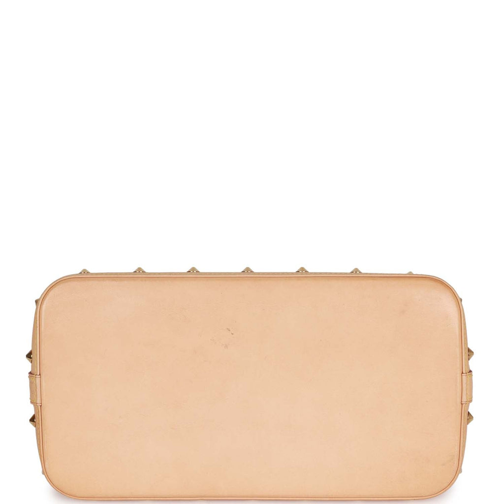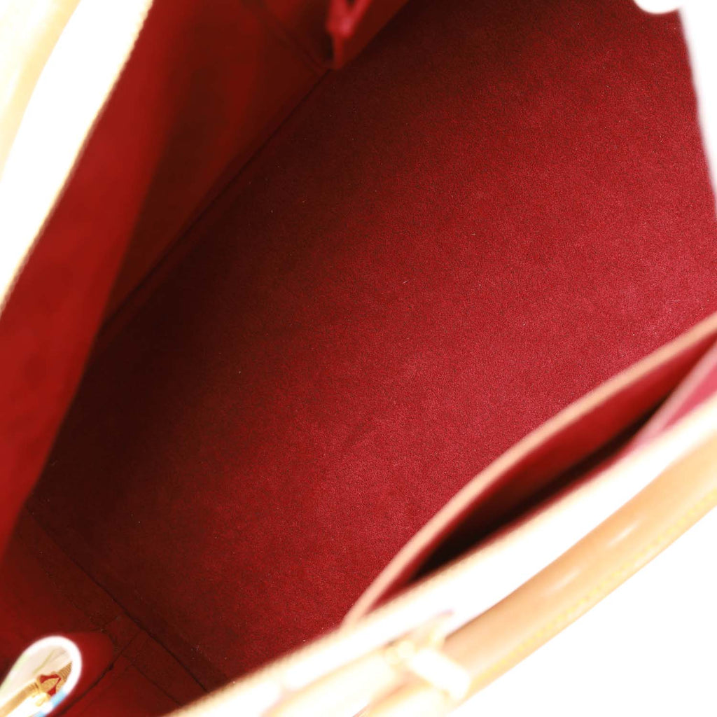 This Multicolor Alma is in white coated canvas with golden tone hardware and features 33 silk screened colors designed by Takashi Murakami, vachetta leather top handles, trim, front pocket and zip top closure.