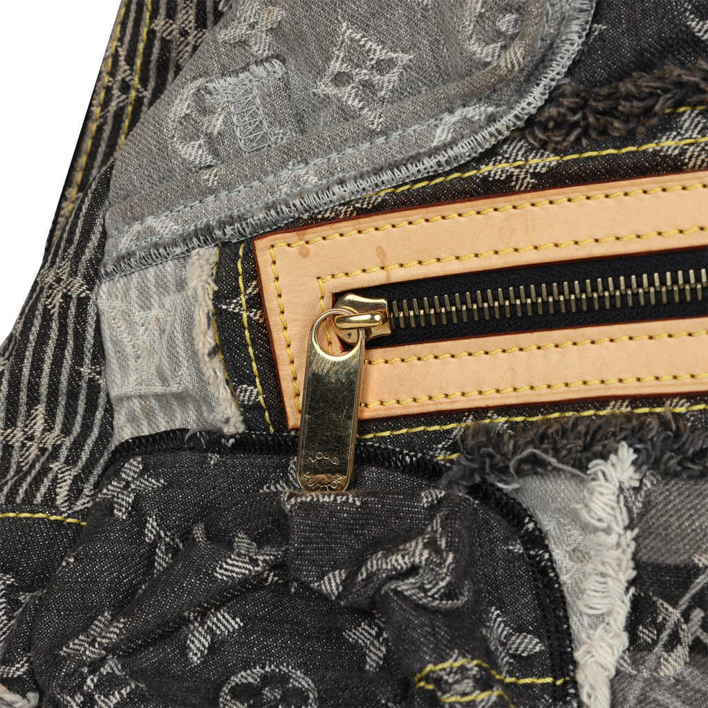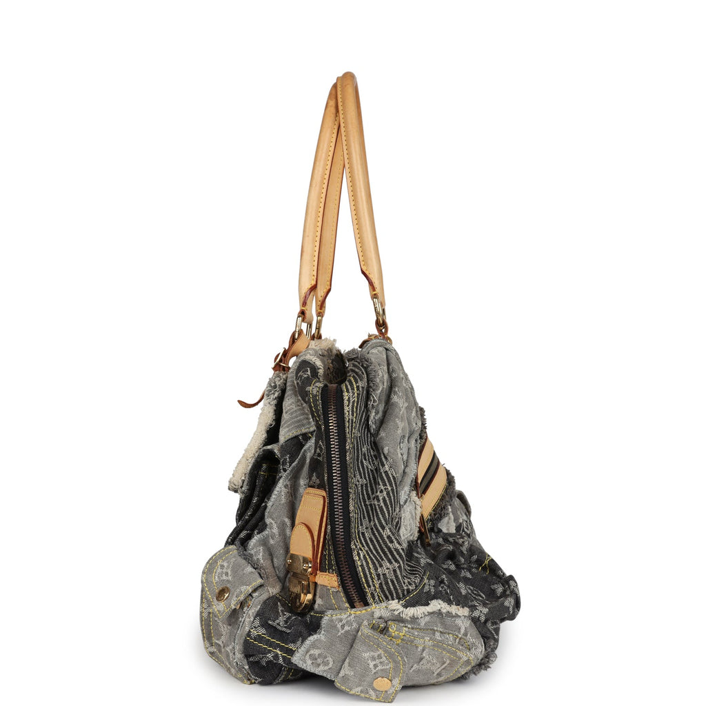 Pre-owned Louis Vuitton Patchwork Bowly Bag Grey Monogram Denim Gold Hardware