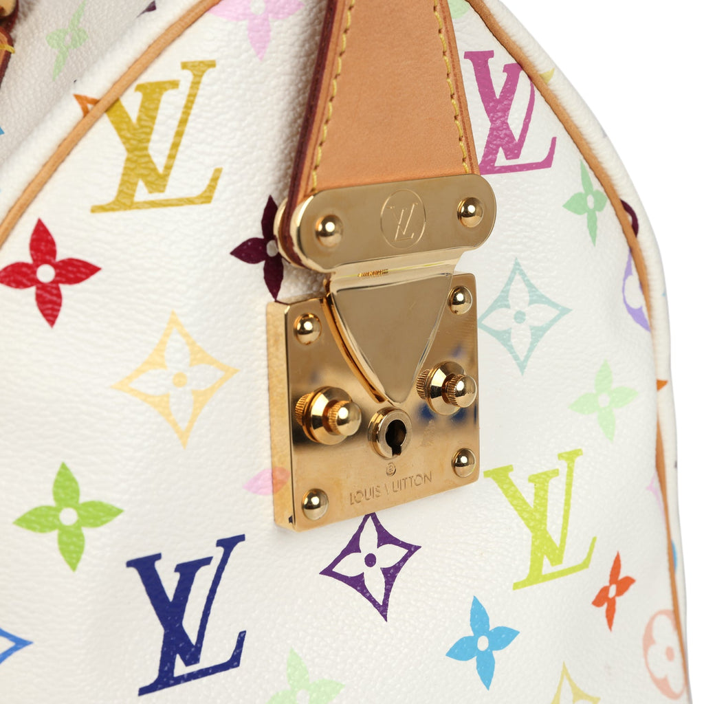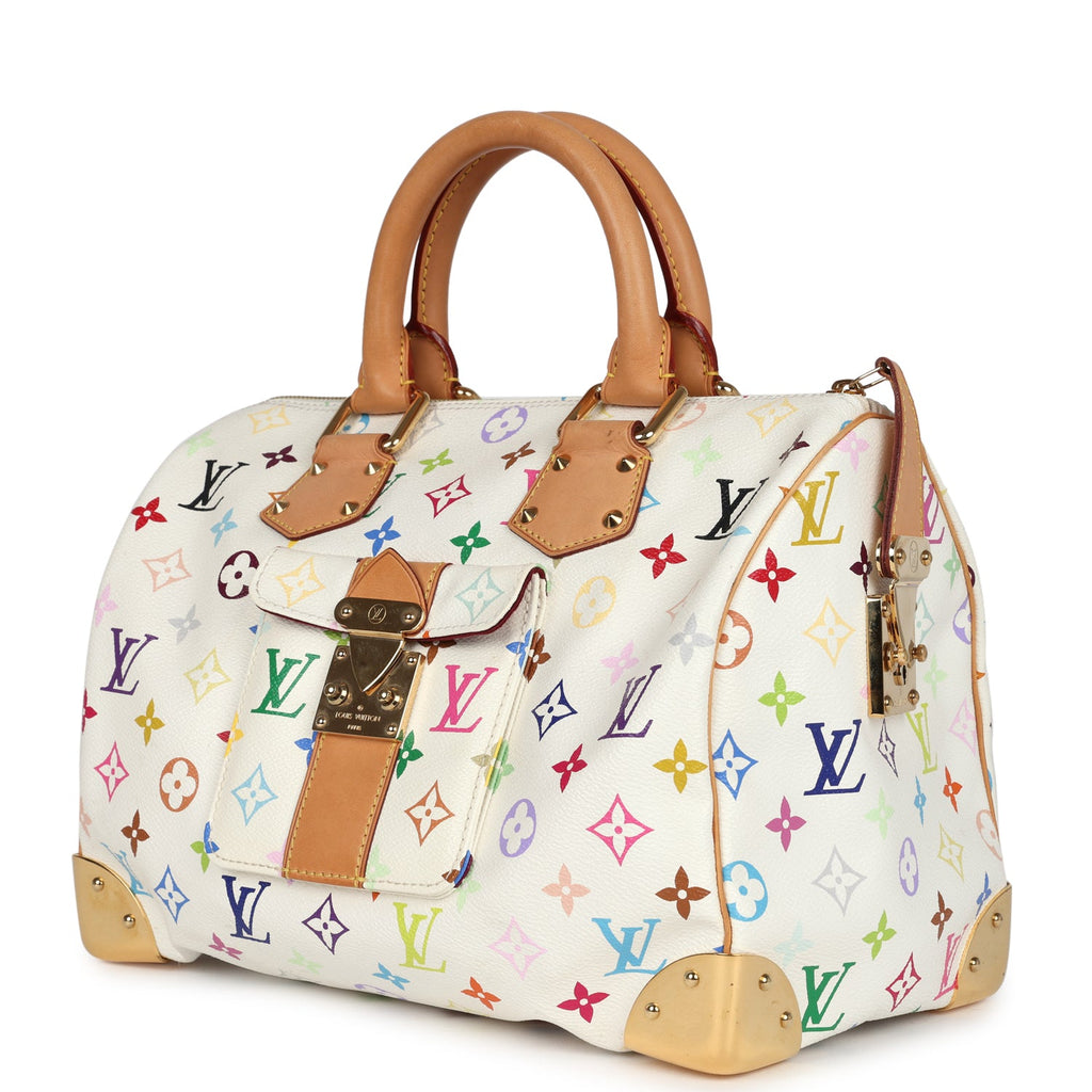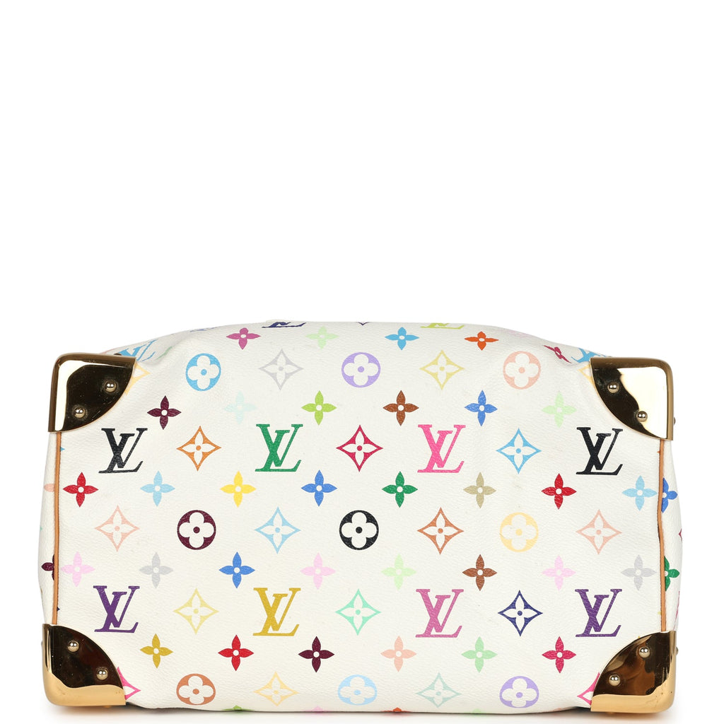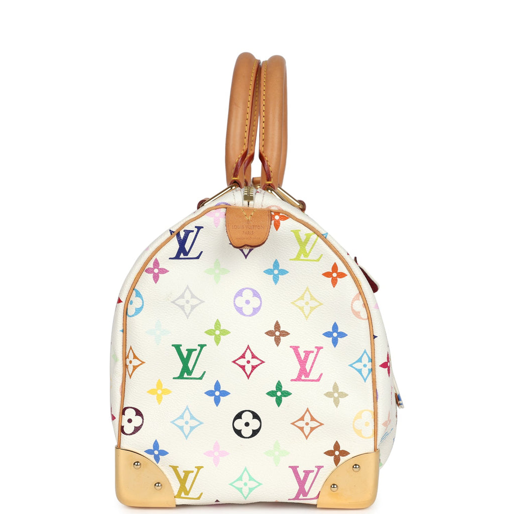 Pre-owned Louis Vuitton x Takashi Murakami Speedy 30 White Multicolor Monogram Gold Hardware