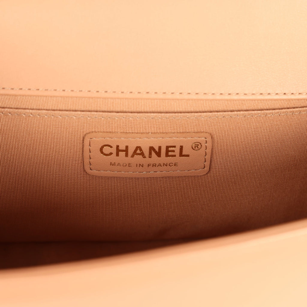 Preowned Chanel Medium Boy Bag Dark Beige Lambskin Antique Gold Hardware