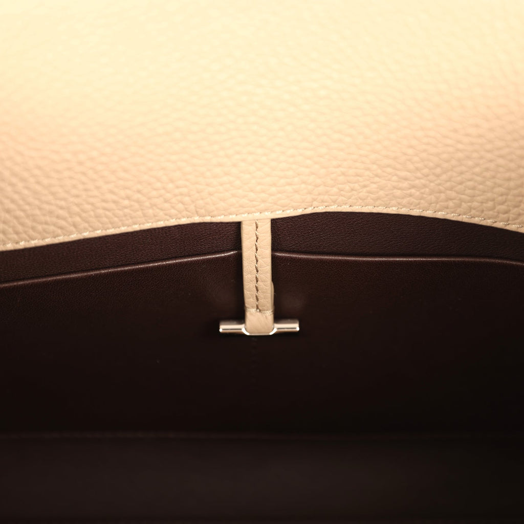 The Row Margaux Shoulder 12 Bag Dark Taupe Calfskin Silver Hardware