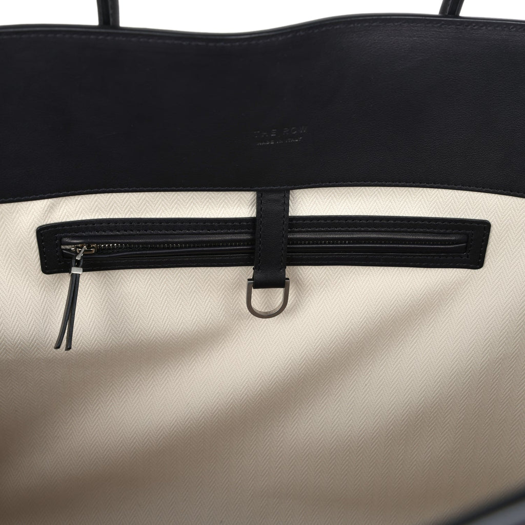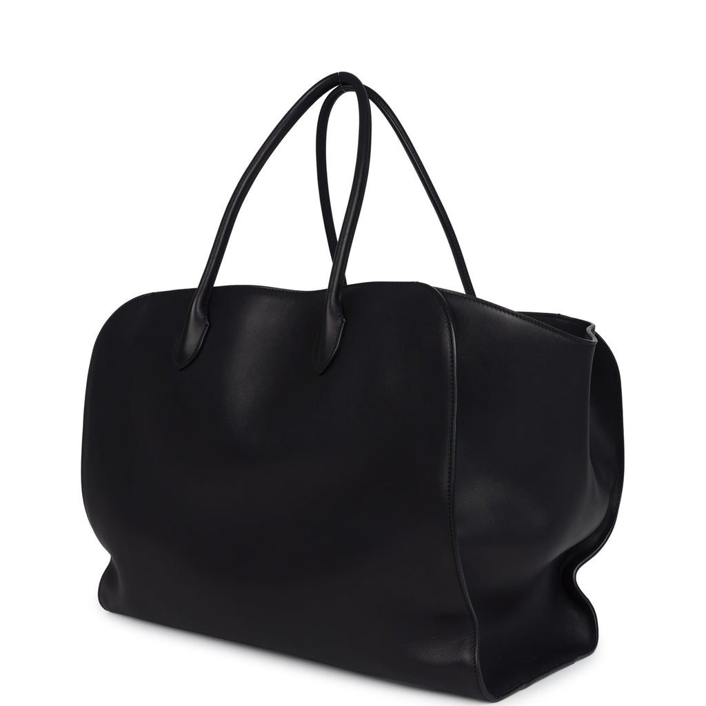 The Row Marlo 17 Tote Bag Black Saddle Leather Silver Hardware