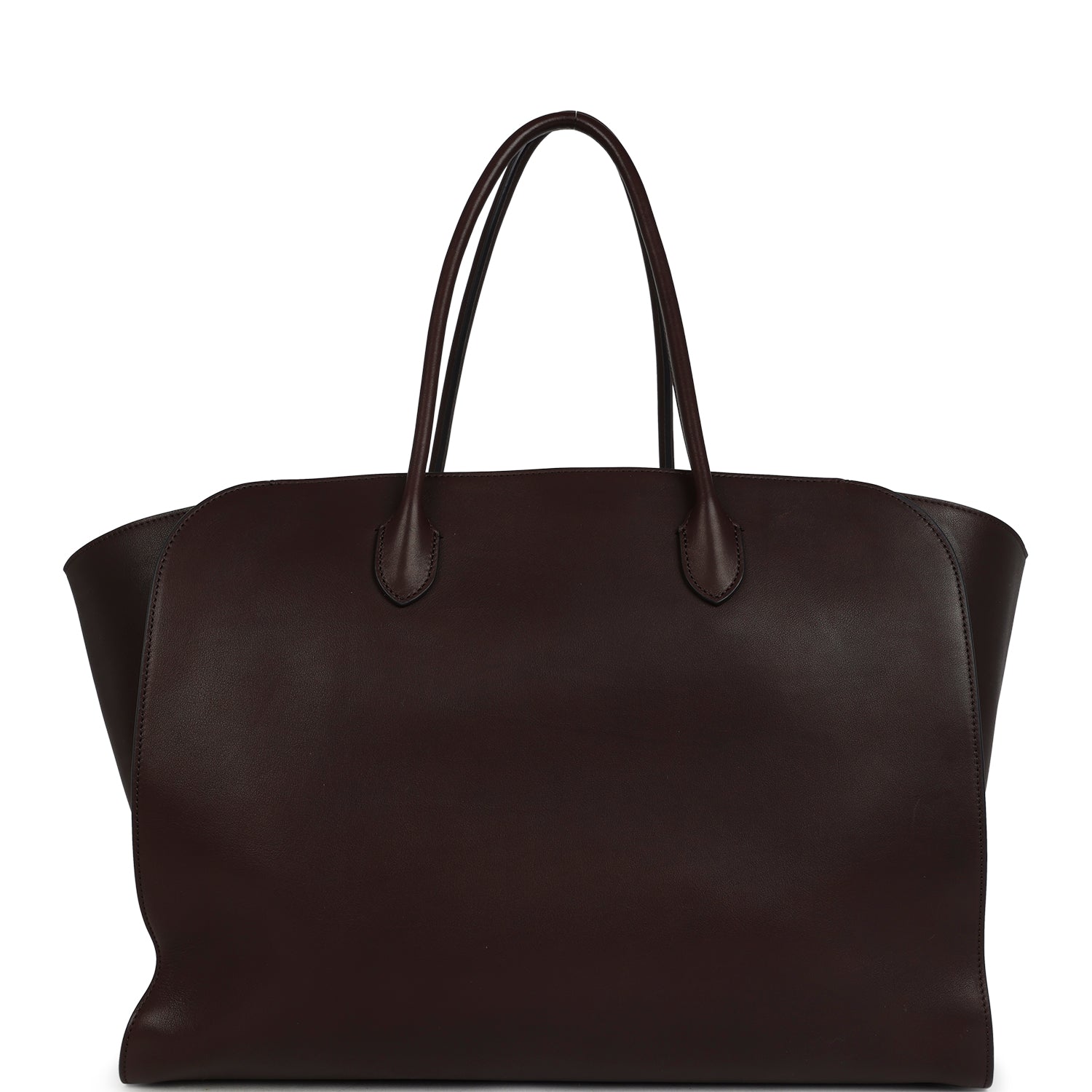 The Row Marlo 17 Tote Bag Chestnut Saddle Leather Silver Hardware