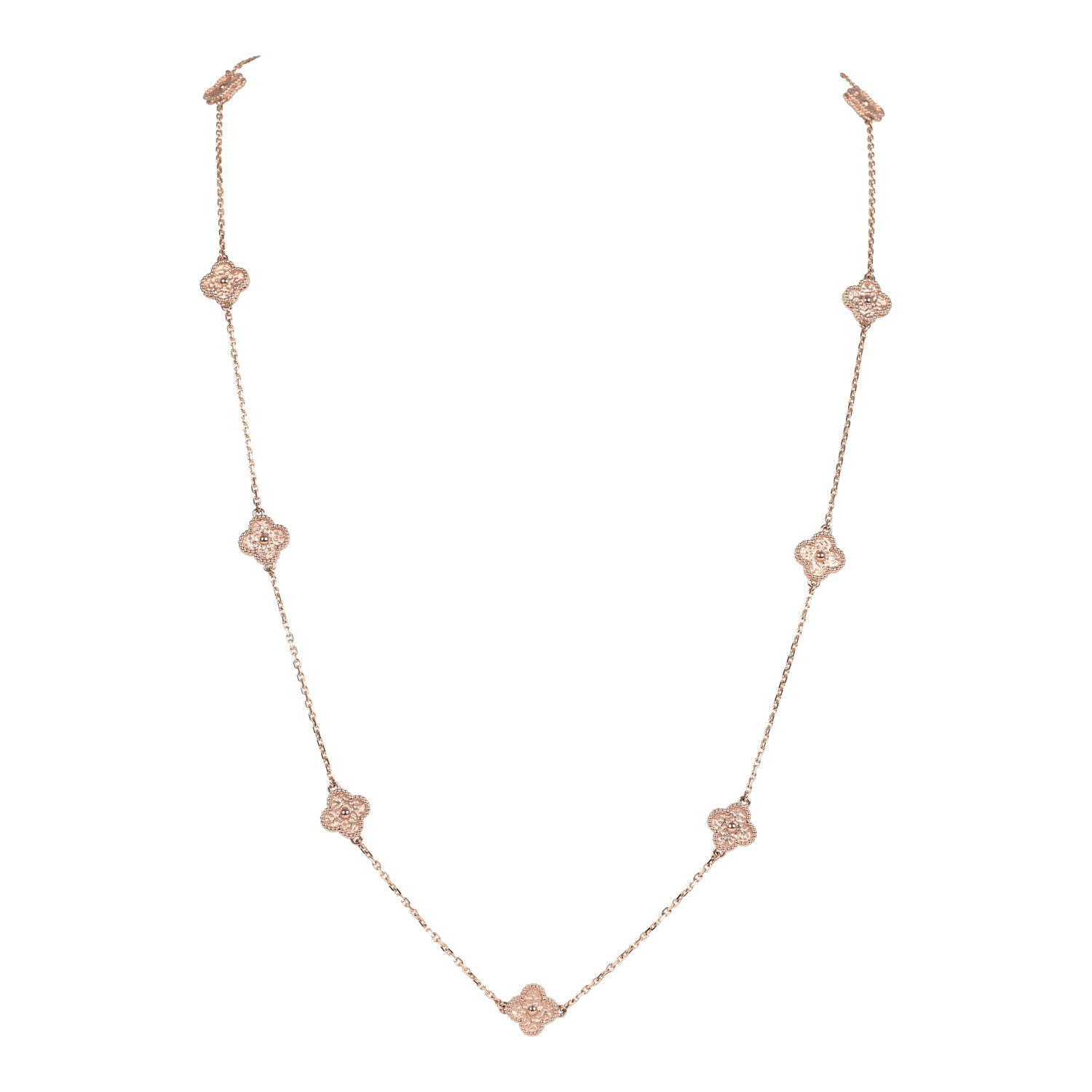 Van Cleef & Arpels Sweet Alhambra 16 Motif Long Necklace 18K Rose Gold Hardware