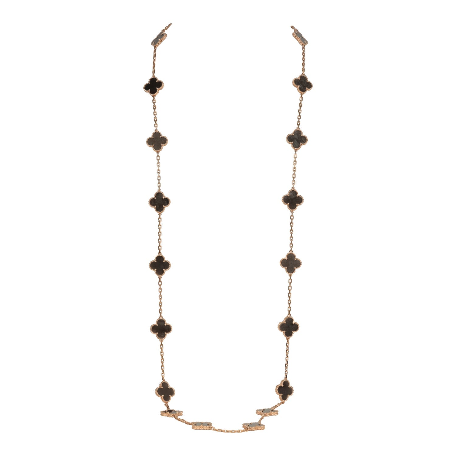 Van Cleef & Arpels Vintage Alhambra 20 Motif Long Necklace Silver Obsidian & 18K Rose Gold Hardware