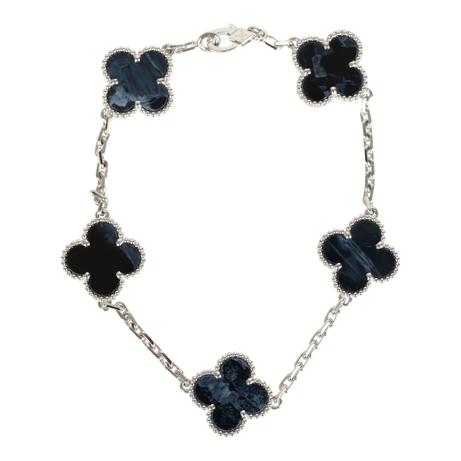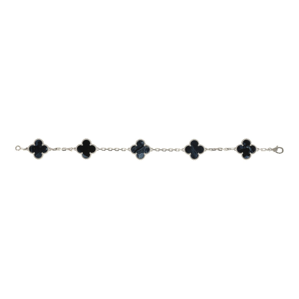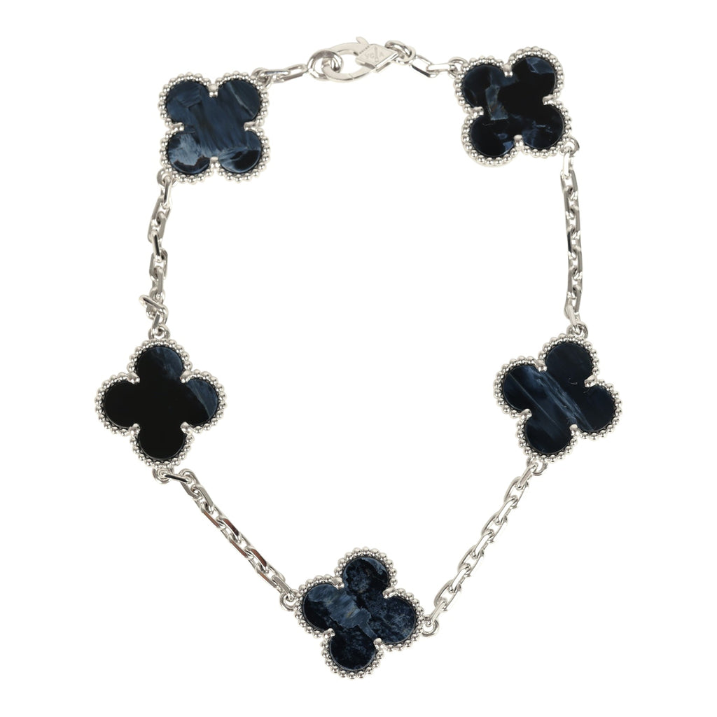Van Cleef & Arpels Vintage Alhambra 5 Motif Bracelet Pietersite 18K White Gold