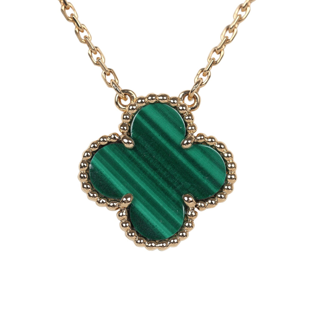 Van Cleef & Arpels Vintage Alhambra Motif Pendant Necklace Malachite 18K Yellow Gold
