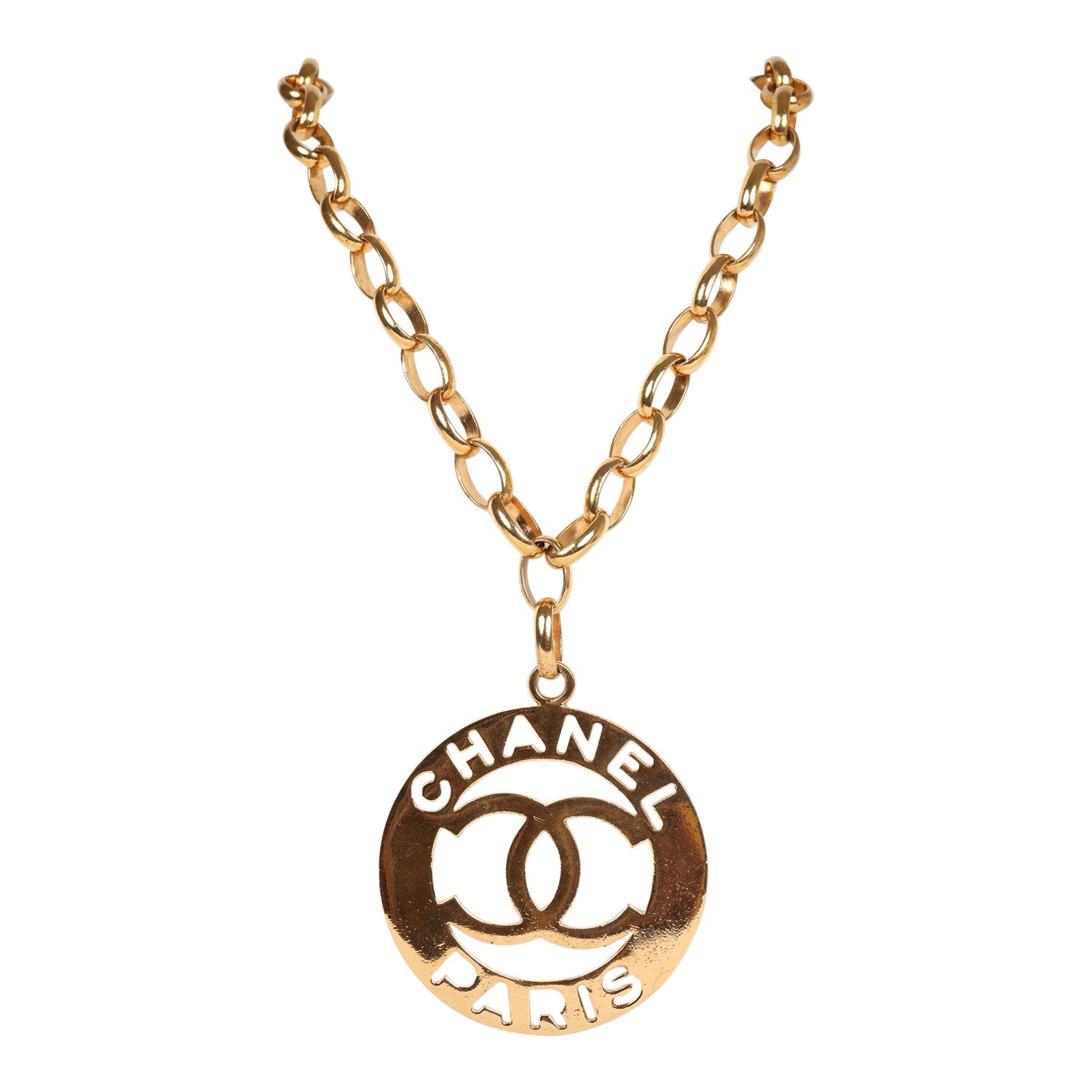 Vintage Chanel 24K Gold Plated CC Paris Jumbo Medallion