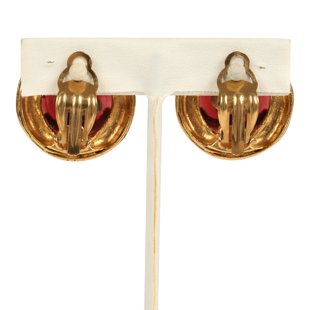 Vintage Chanel 24K Gold Plated Red Gripoix CC Earrings
