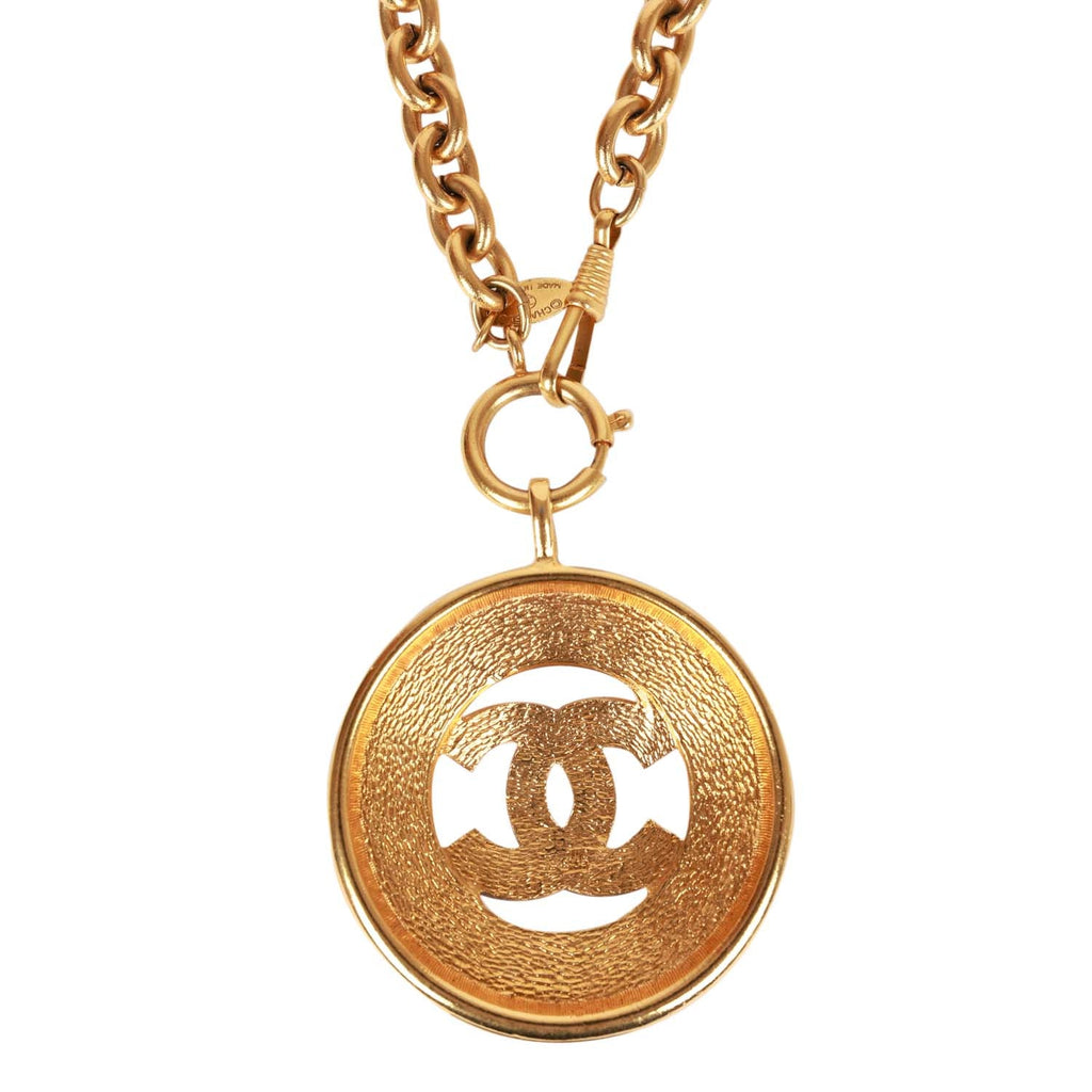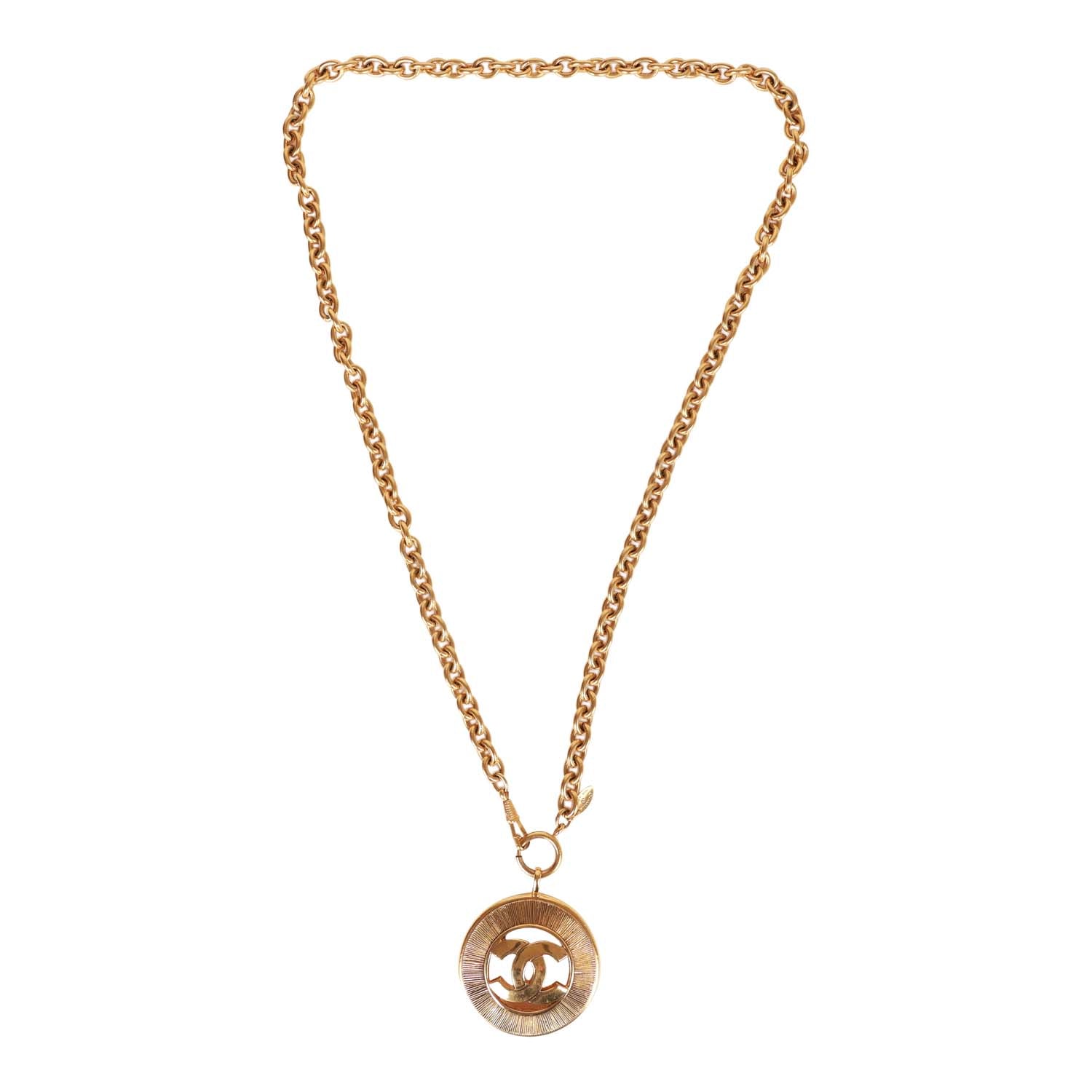 Vintage Chanel 24K Gold Plated Sunburst Interlocking CC Medallion Necklace