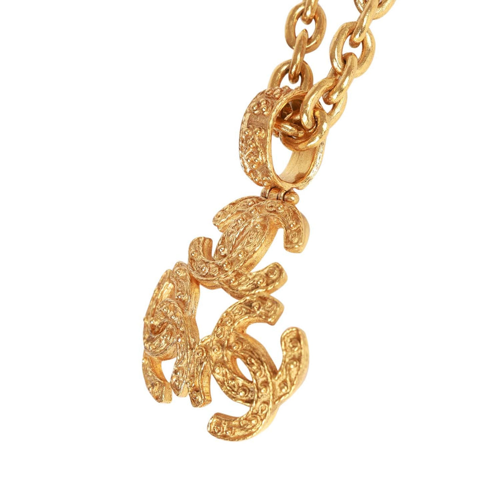 Vintage Chanel 24K Gold Plated Triple Interlocking CC Pendant Necklace
