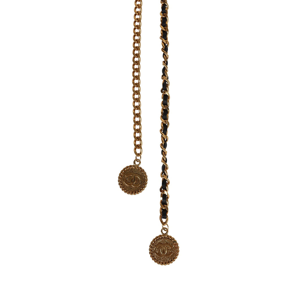 Vintage Chanel 24K Gold Plated CC Medallion Chainlink Leather Belt Black Leather