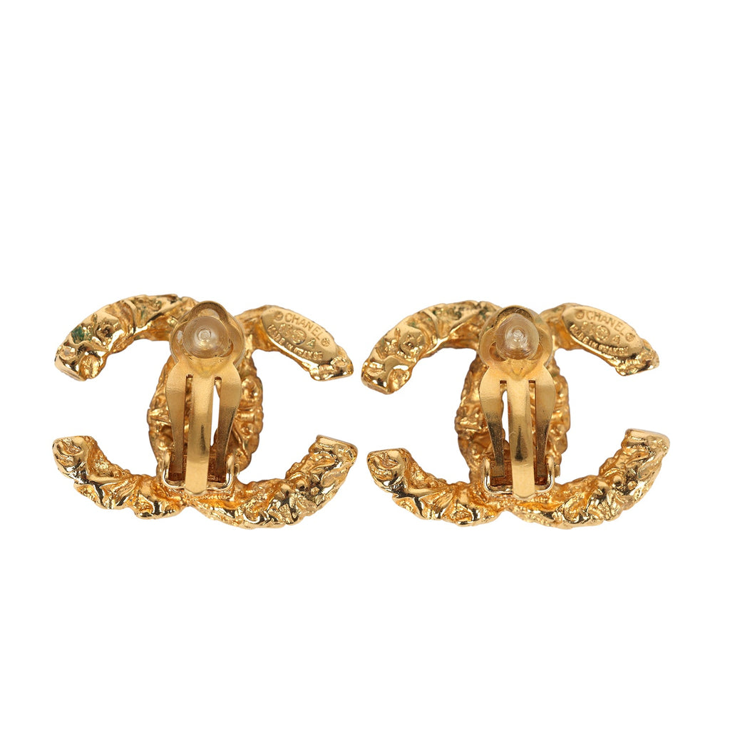 Vintage Chanel 24K Gold Plated Florentine CC Earrings
