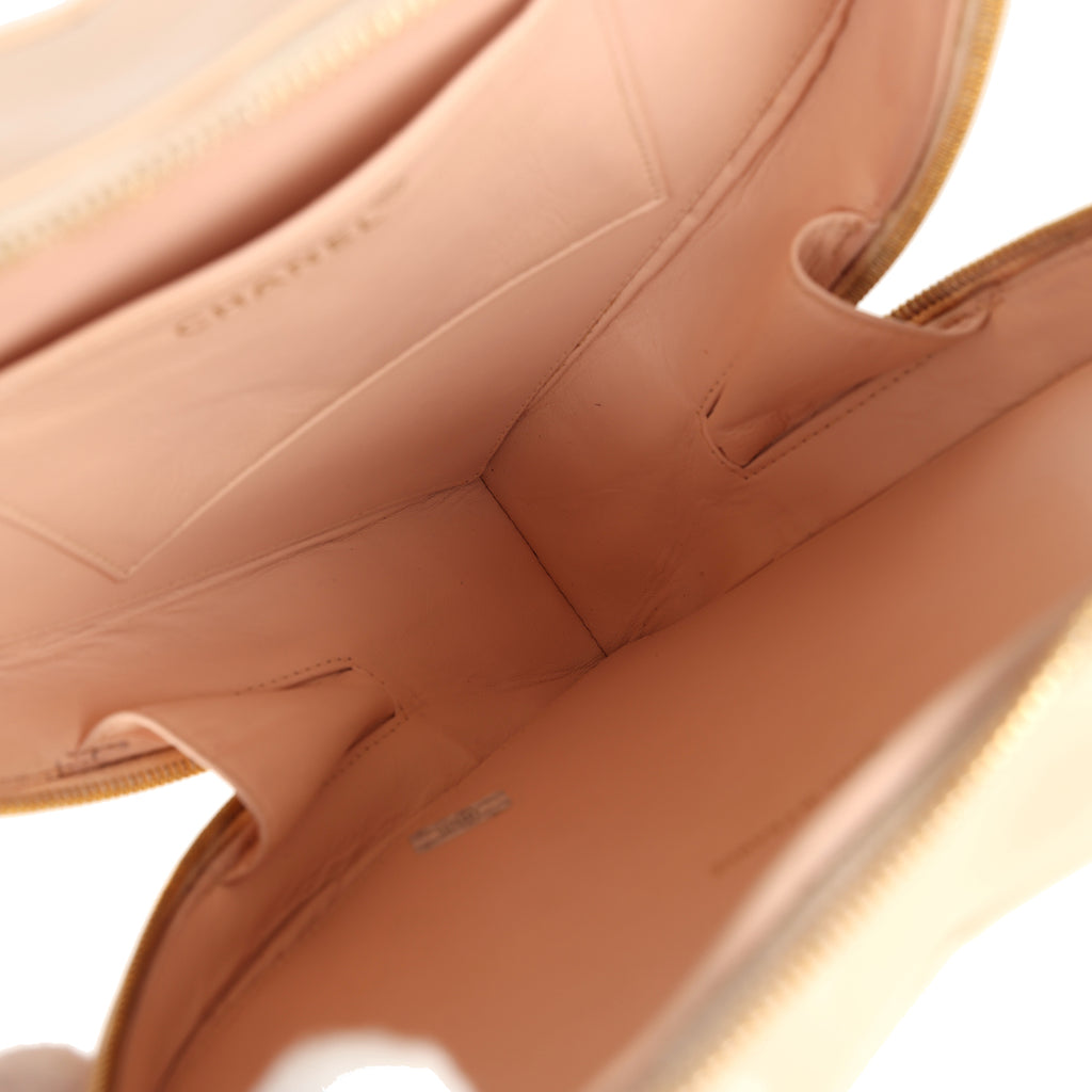 Vintage Chanel Heart Vanity Bag Beige and Black Patent Antique Gold Hardware