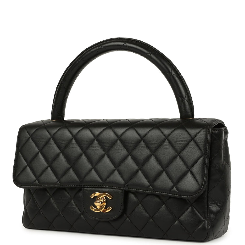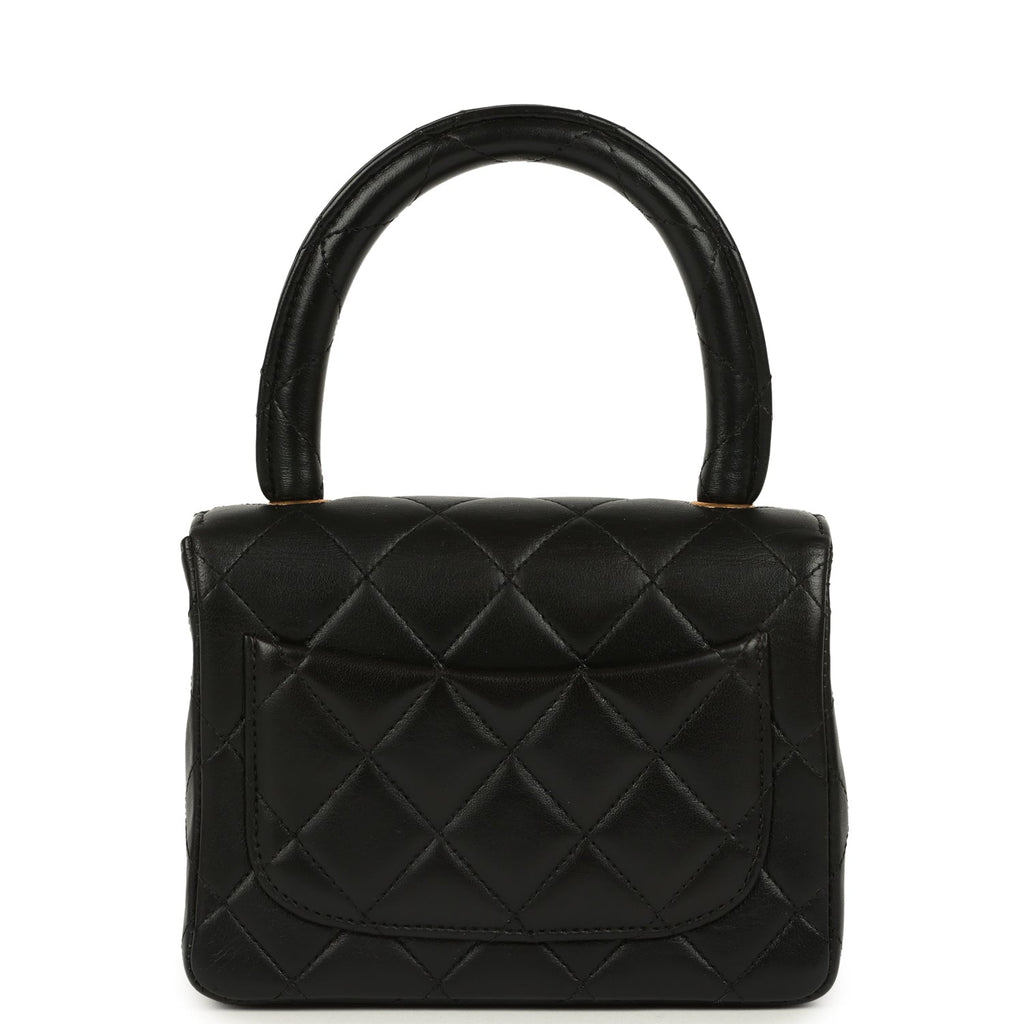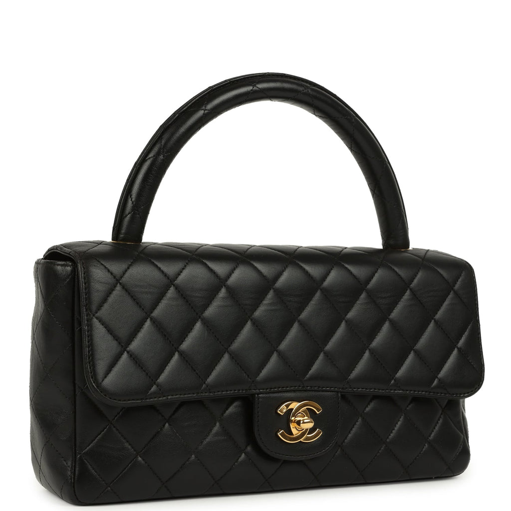 Vintage Chanel Kelly Parent and Child Flap Bag Set Black Lambskin Gold Hardware