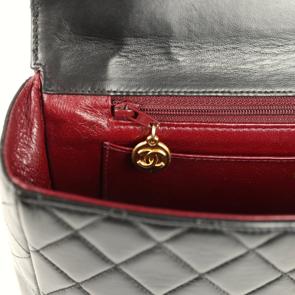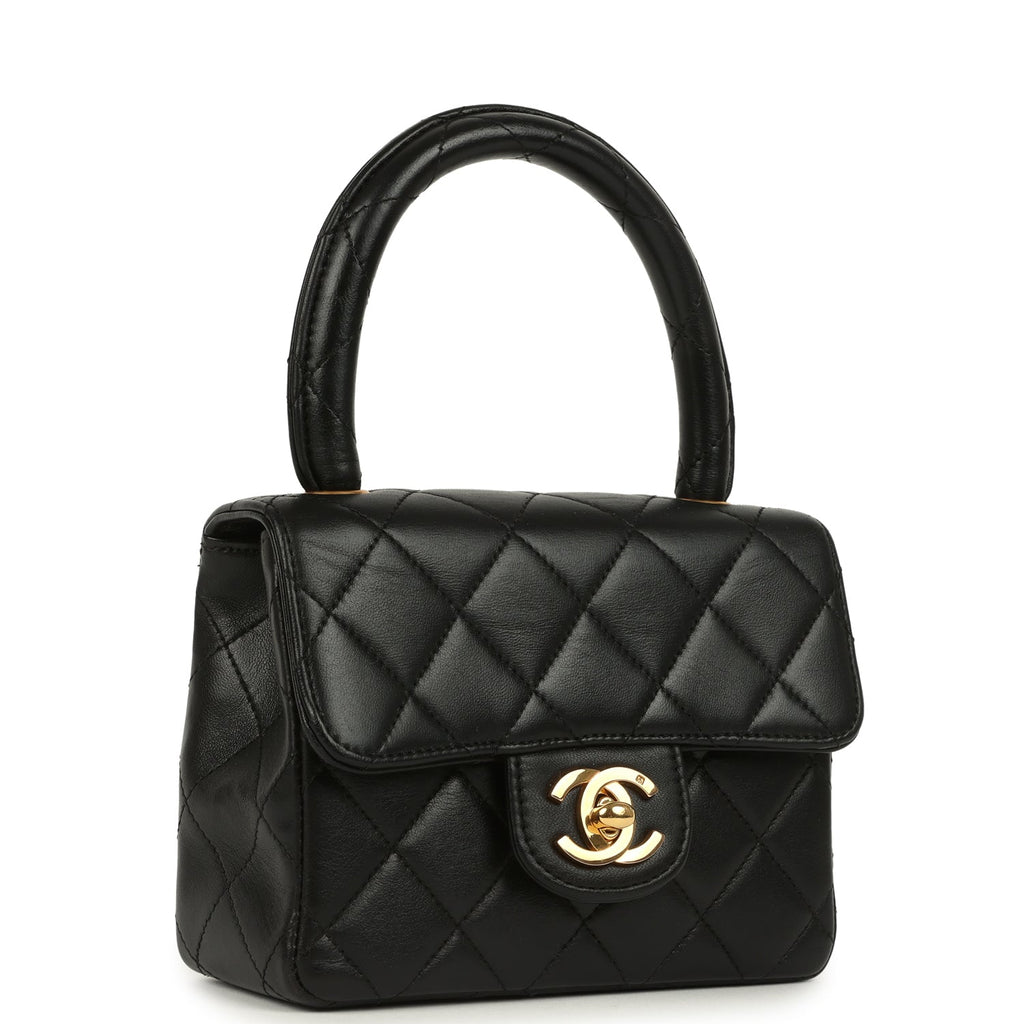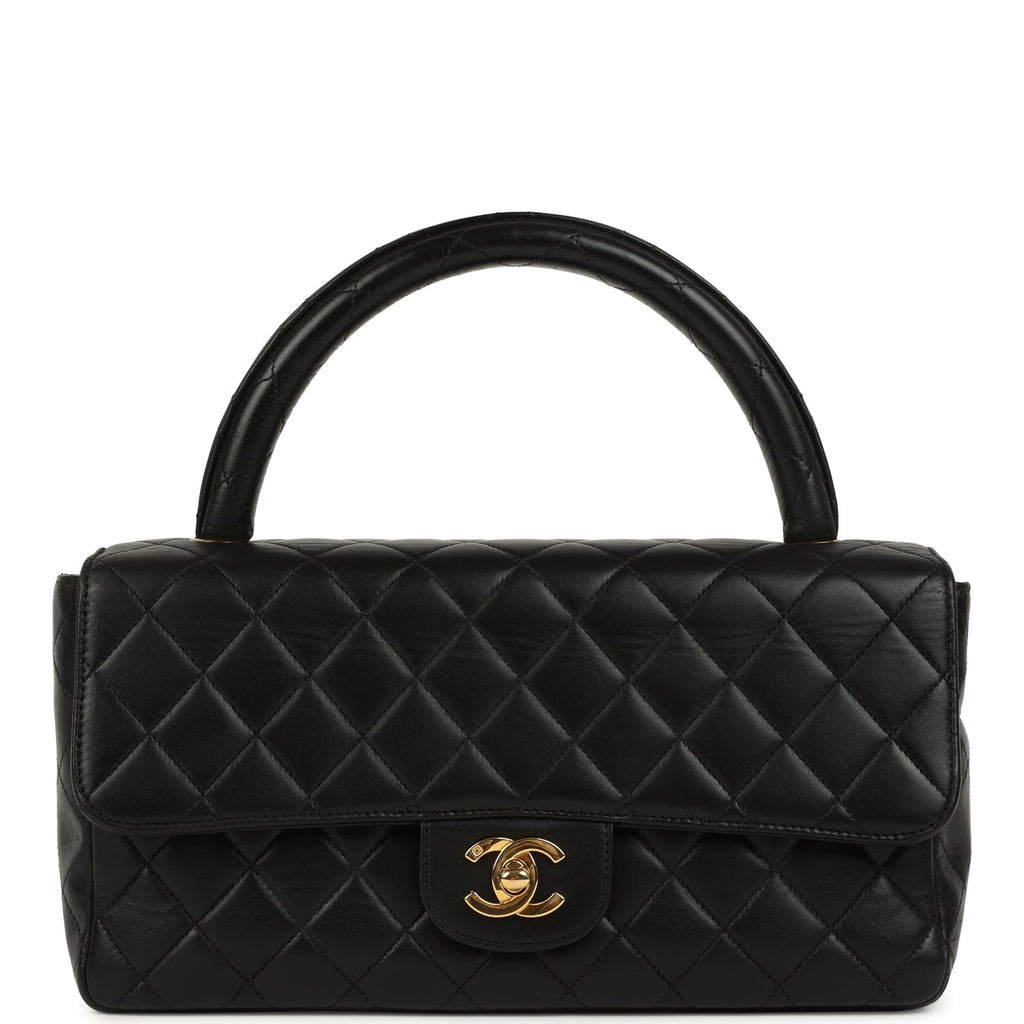 Vintage Chanel Kelly Parent and Child Flap Bag Set Black Lambskin Gold Hardware