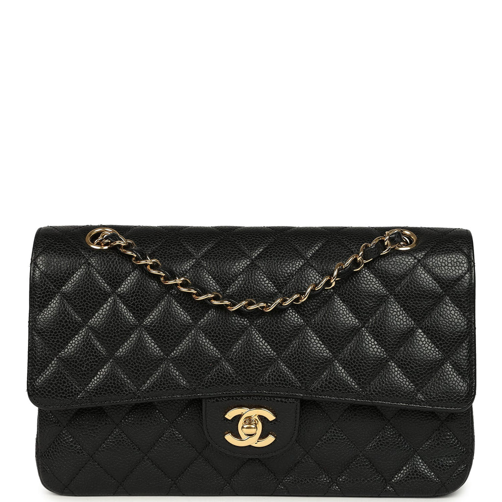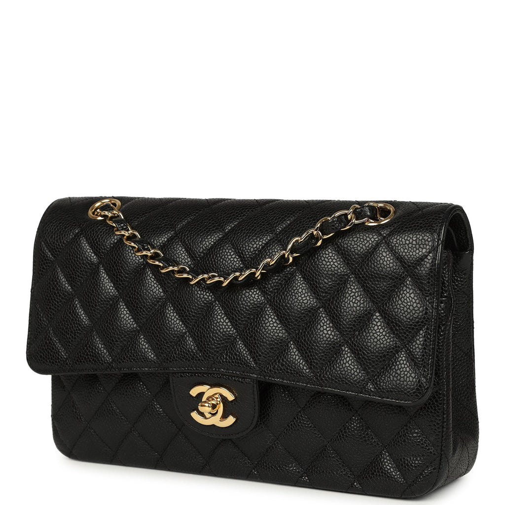 Vintage Chanel Medium Classic Double Flap Bag Black Caviar Gold Hardware