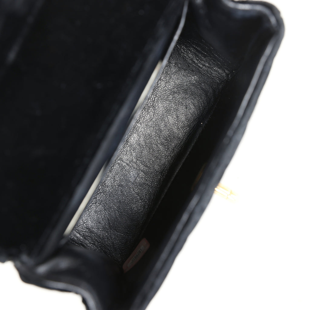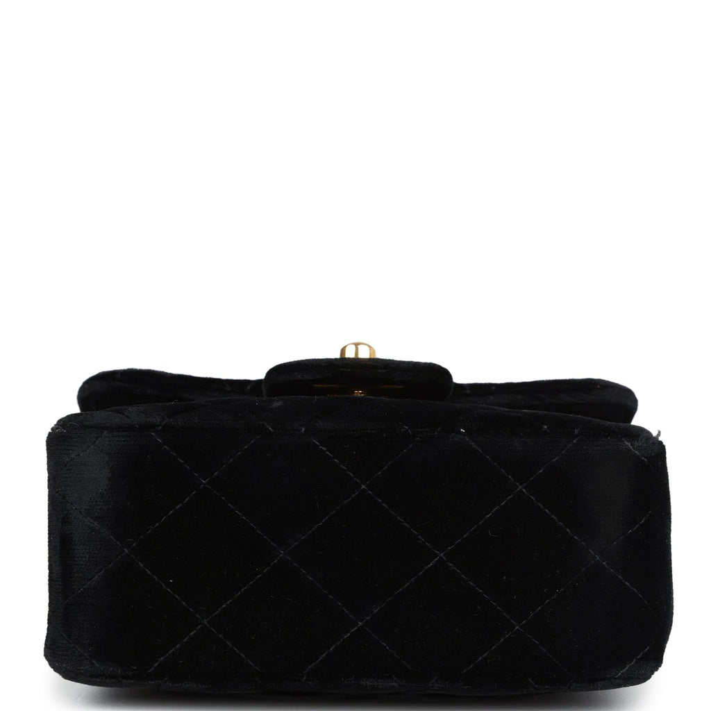 Vintage Chanel Micro Kelly Child Flap Bag Black Velvet Gold Hardware