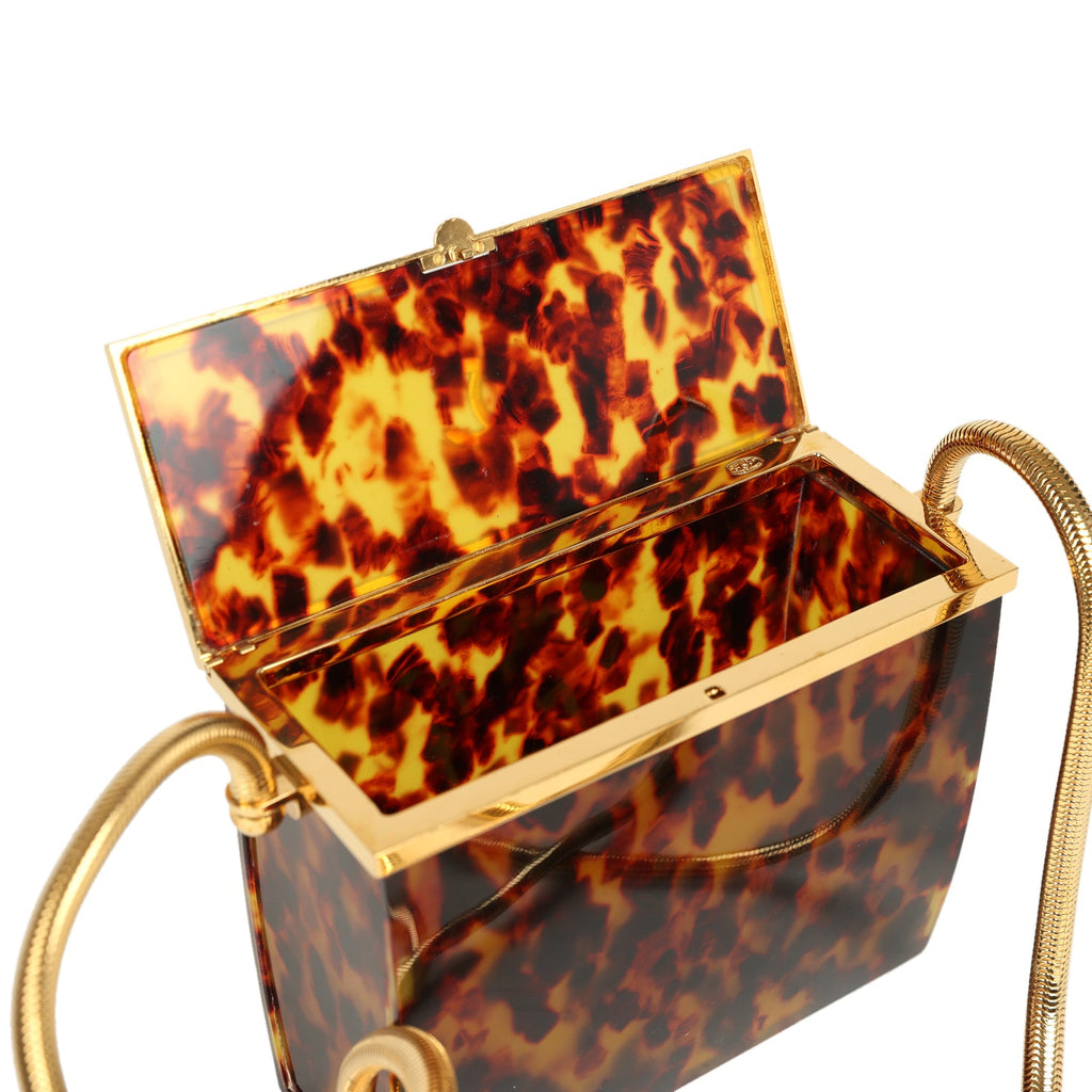 Vintage Chanel Minaudiere Clutch with Chain Tortoiseshell Acrylic Gold Hardware