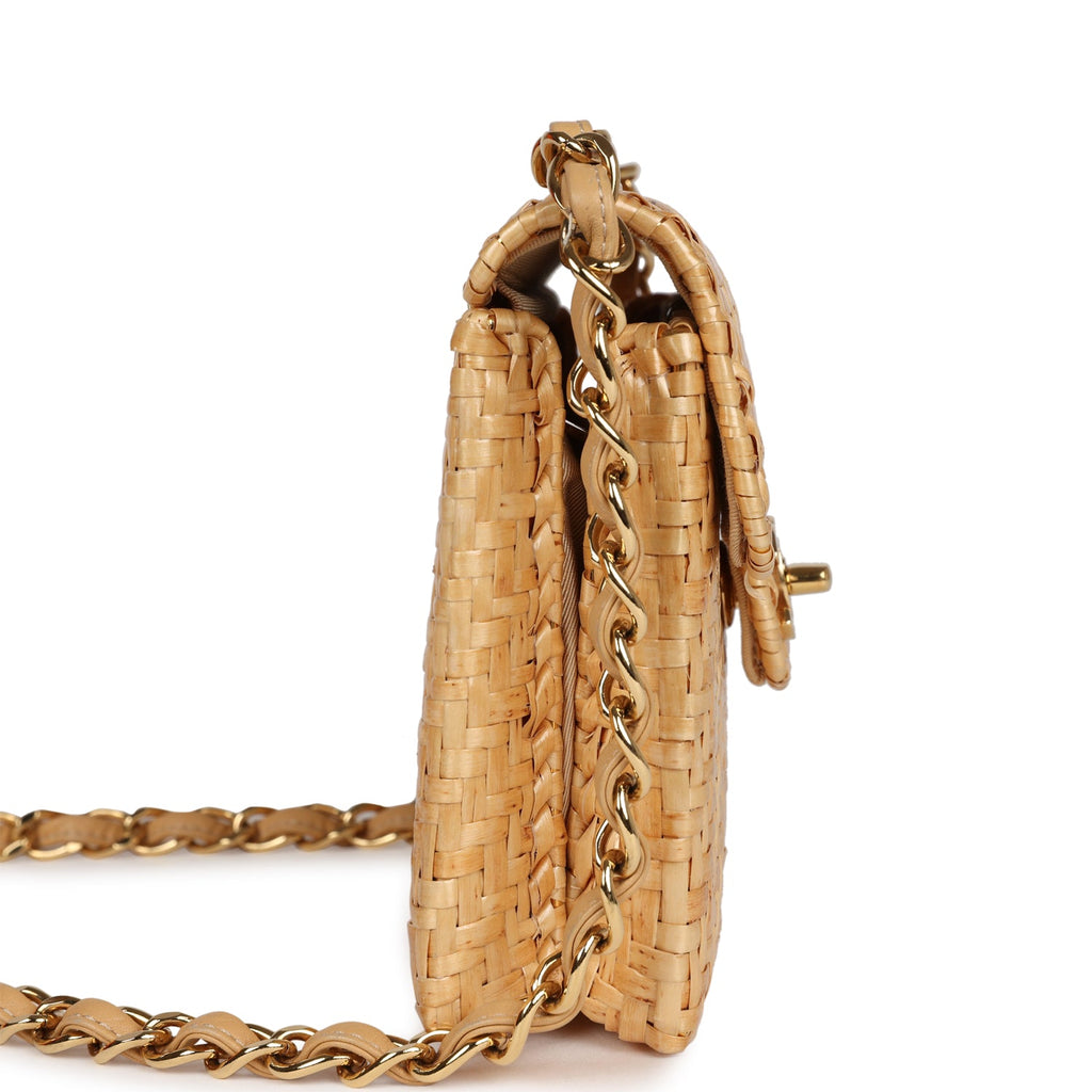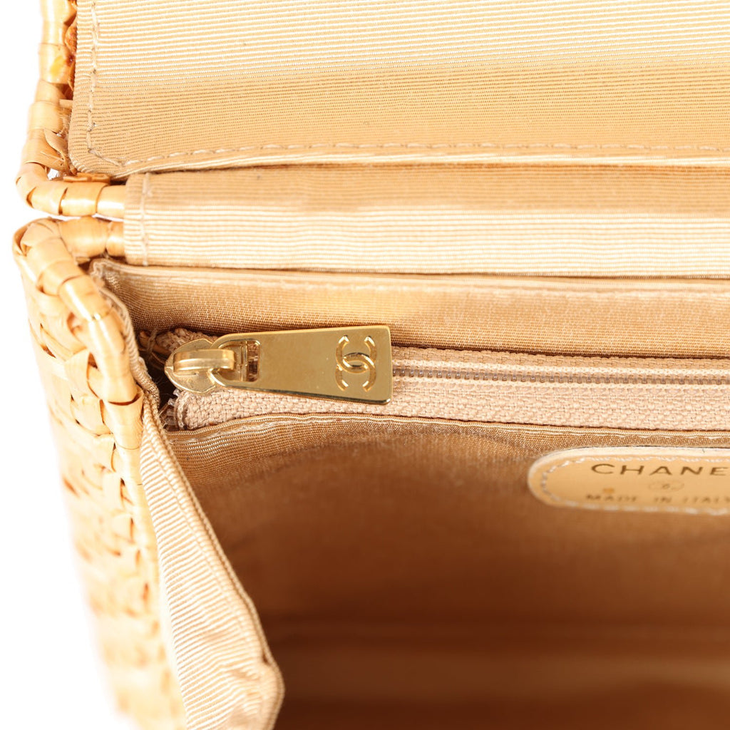 Vintage Chanel Mini Flap Bag Natural Wicker Gold Hardware