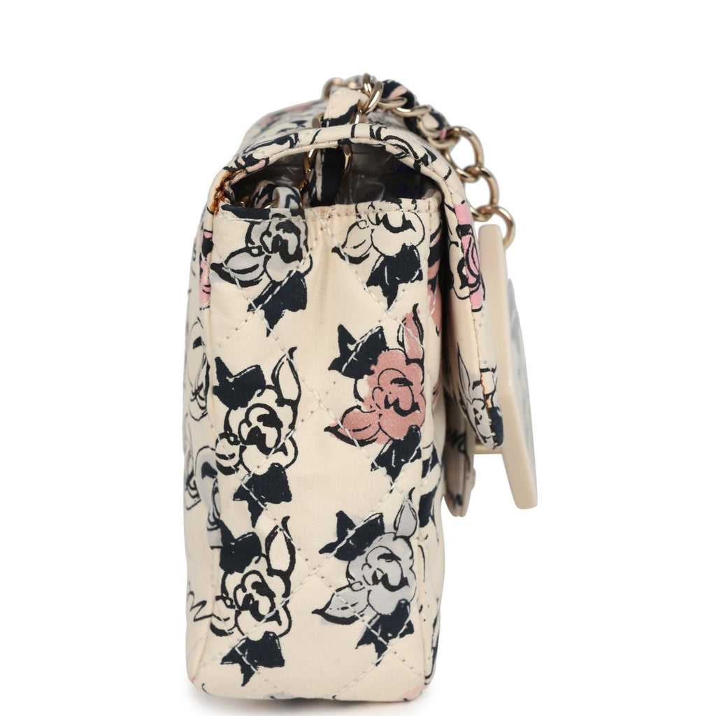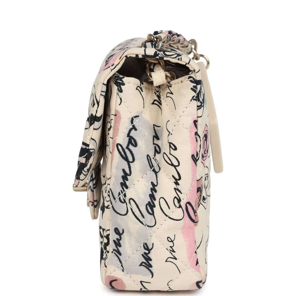 Vintage Chanel Mini Logo Square Flap Bag Light Pink Multi Printed Nylon Light Gold Hardware